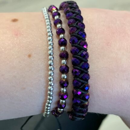 Bratara reglabila cu bile Argint 925 si pietre semipretioase Hematit fatetat mov de 4mm
