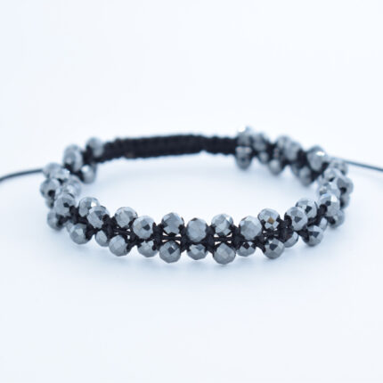 Bratara reglabila cu snur impletit si pietre semipretioase Hematit fatetat gri de 4mm
