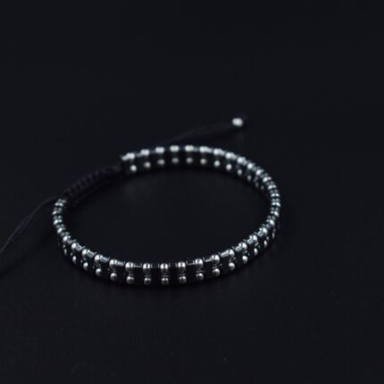 Bratara reglabila impletita manual cu bile din Argint 925,2.5mm si Hematit gri 5mm