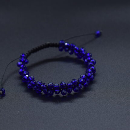 Bratara reglabila cu snur impletit si pietre semipretioase Cristal sticla albastru de 4mm