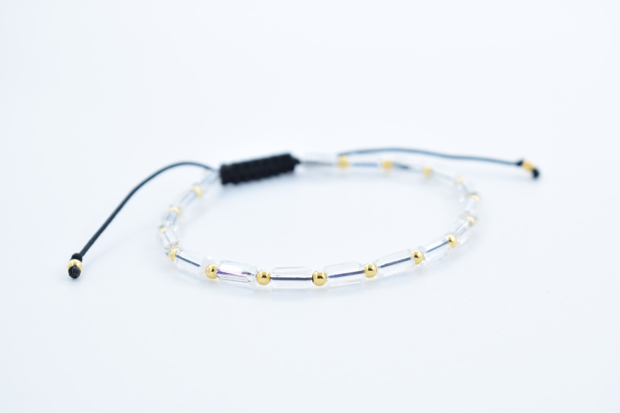 Bratara reglabila cu bile Argint 925 placat aur si pietre semipretioase Cristal sticla, dimensiune 3x5mm