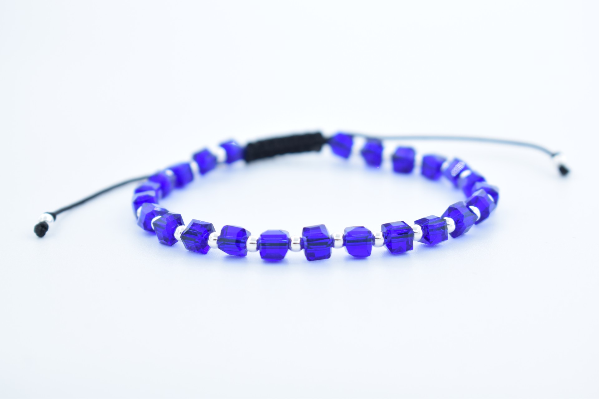 Bratara reglabila cu bile Argint 925 si pietre semipretioase Cristal Sticla, cub albastru dimensiune 4mm