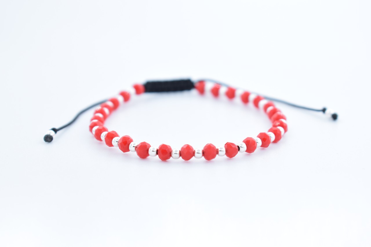 Bratara reglabila cu bile Argint 925 si pietre semipretioase Cristal sticla, dimensiune 4mm