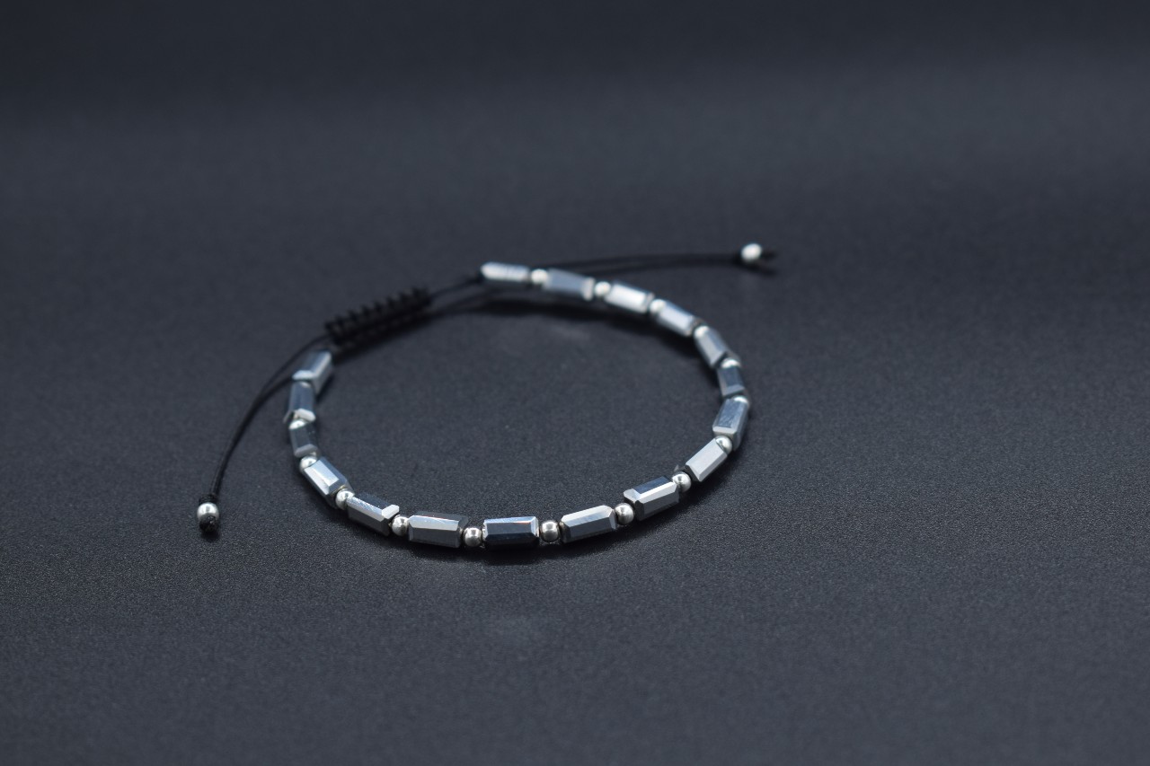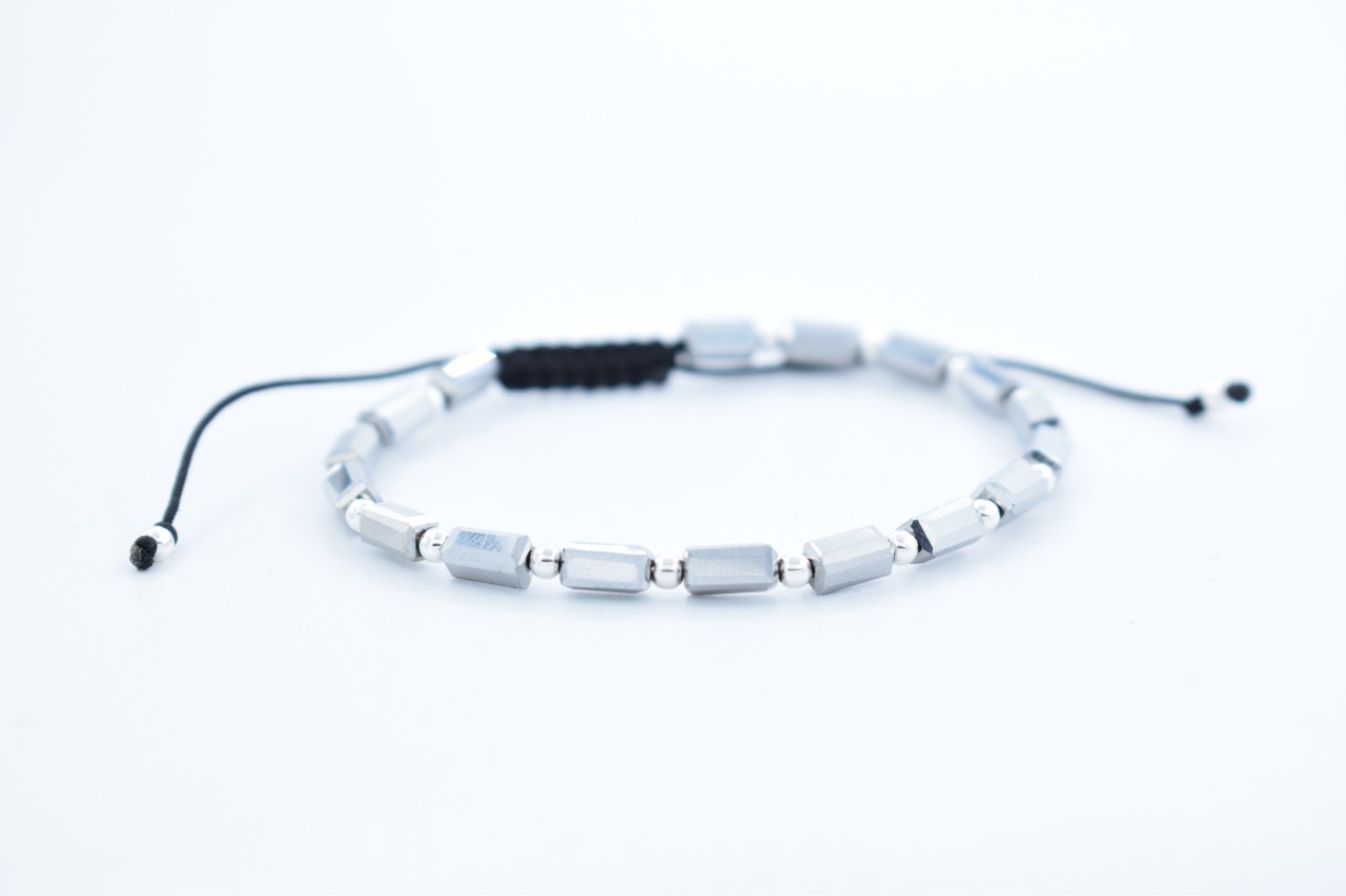 Bratara reglabila cu bile Argint 925 si pietre semipretioase Cristal sticla, gri metalic dimensiune 3x5mm