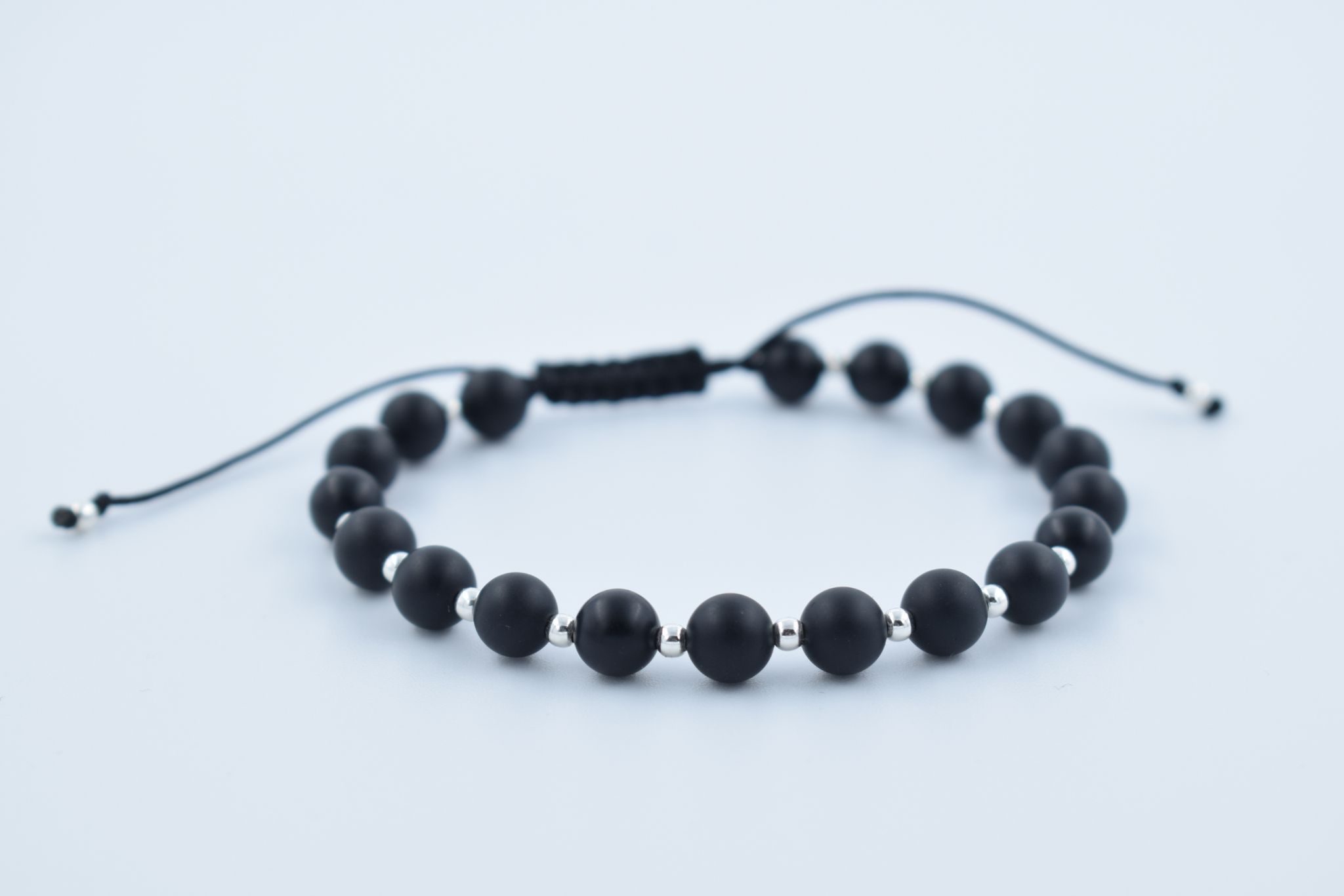 Bratara reglabila cu bile din Argint 925 si Onix negru mat, 6mm