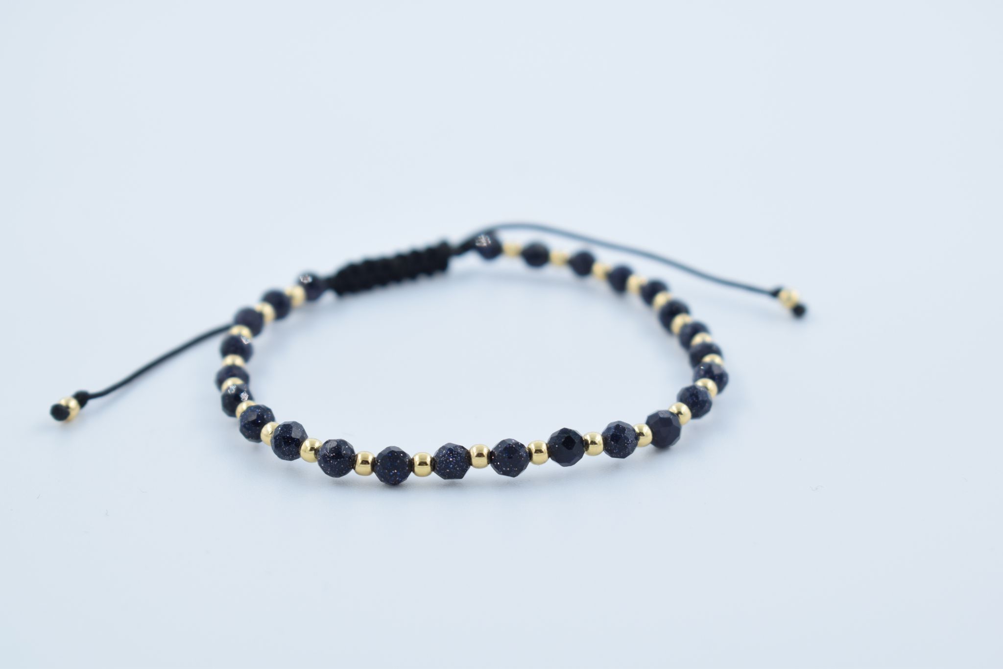Bratara reglabila cu bile din Argint 925 si piatra soarelui albastra