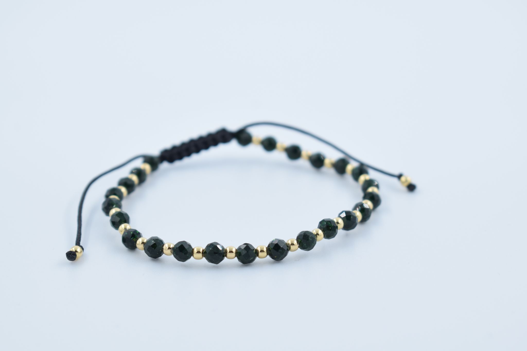 Bratara cu bile din Argint 925 si piatra soarelui verde
