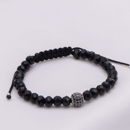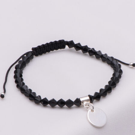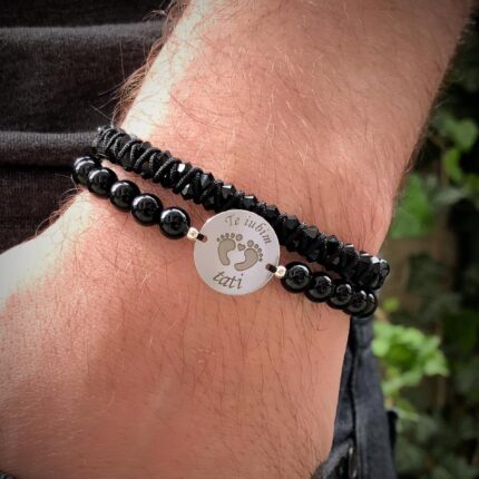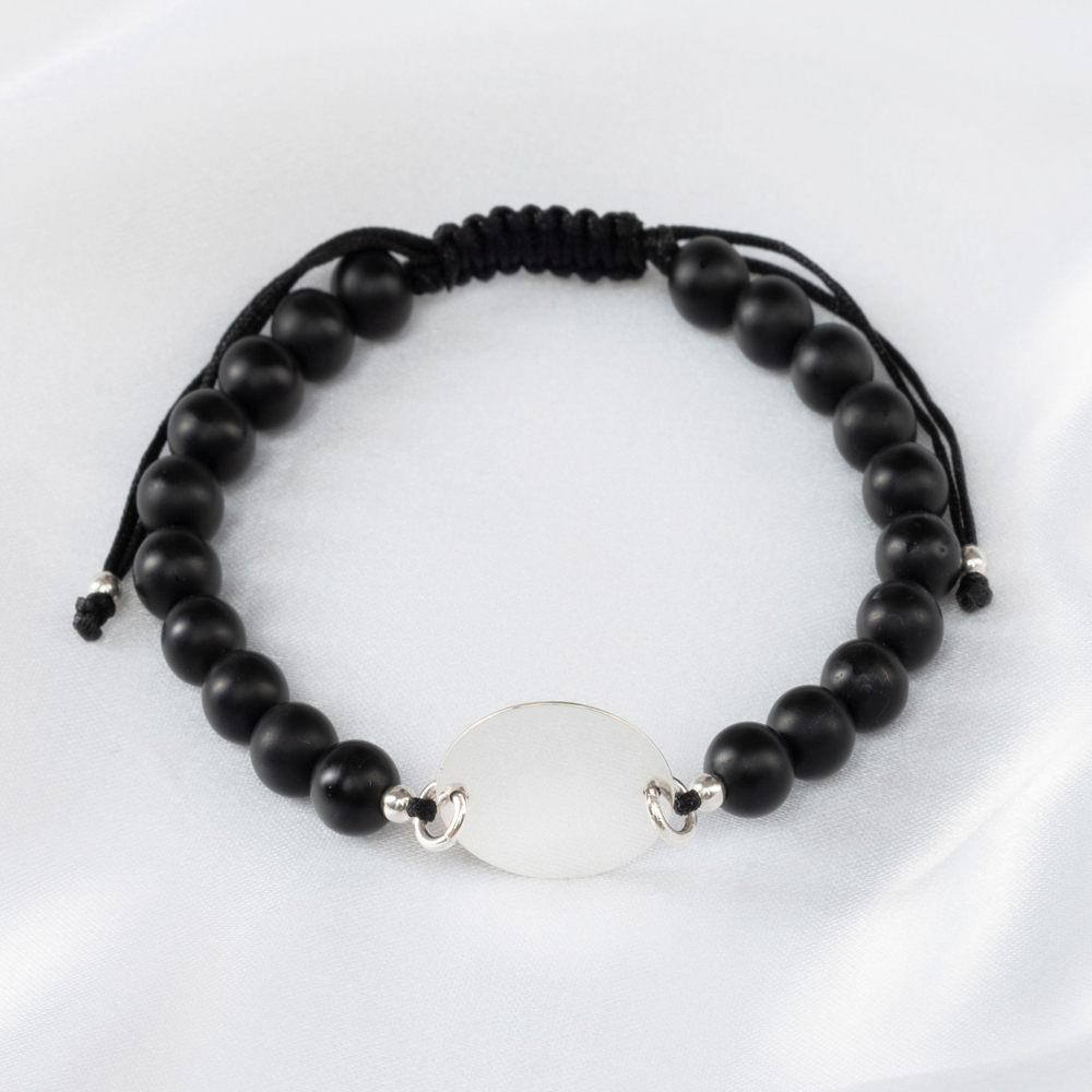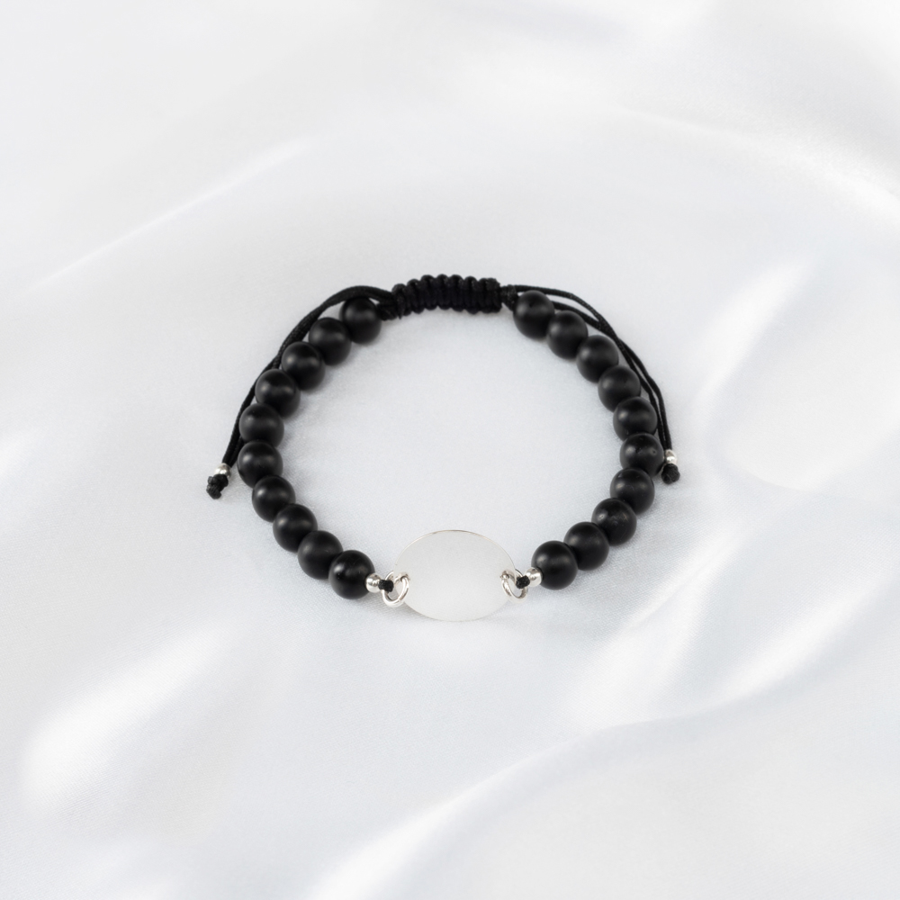 Bratara Reglabila cu onix mat si Banut Argint 925, gravata laser