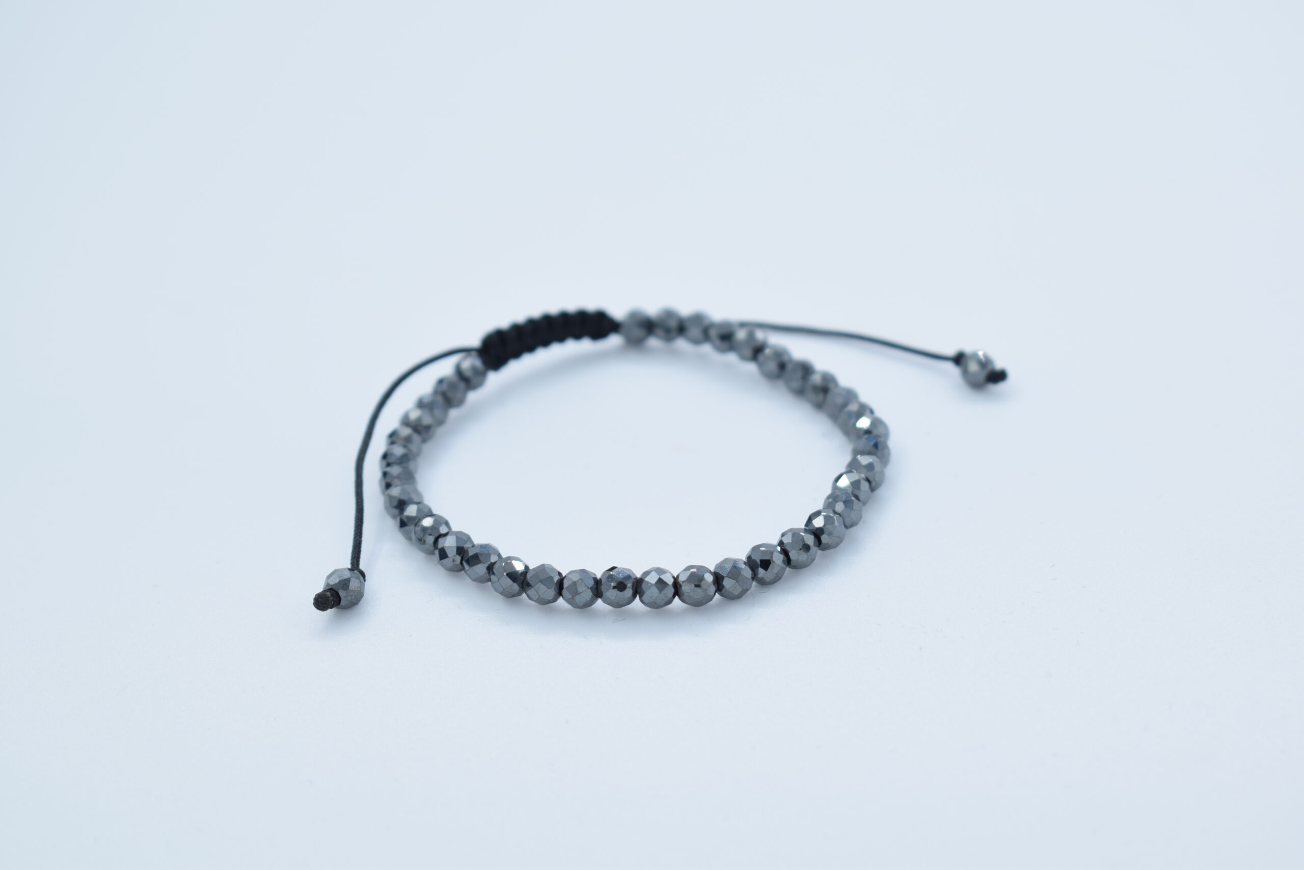 Bratara reglabila cu pietre semipretioase Hematit fatetat gri de 4mm