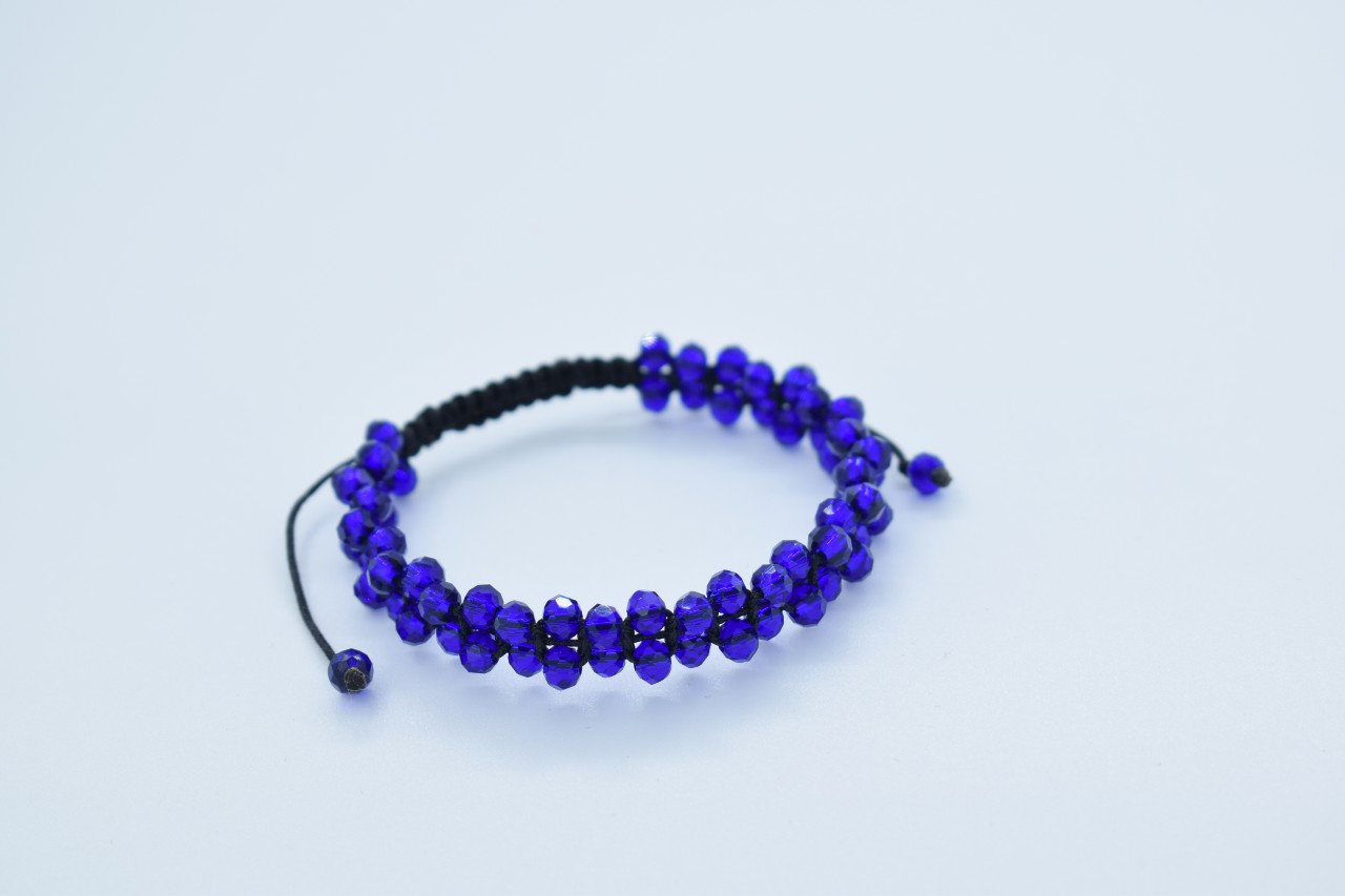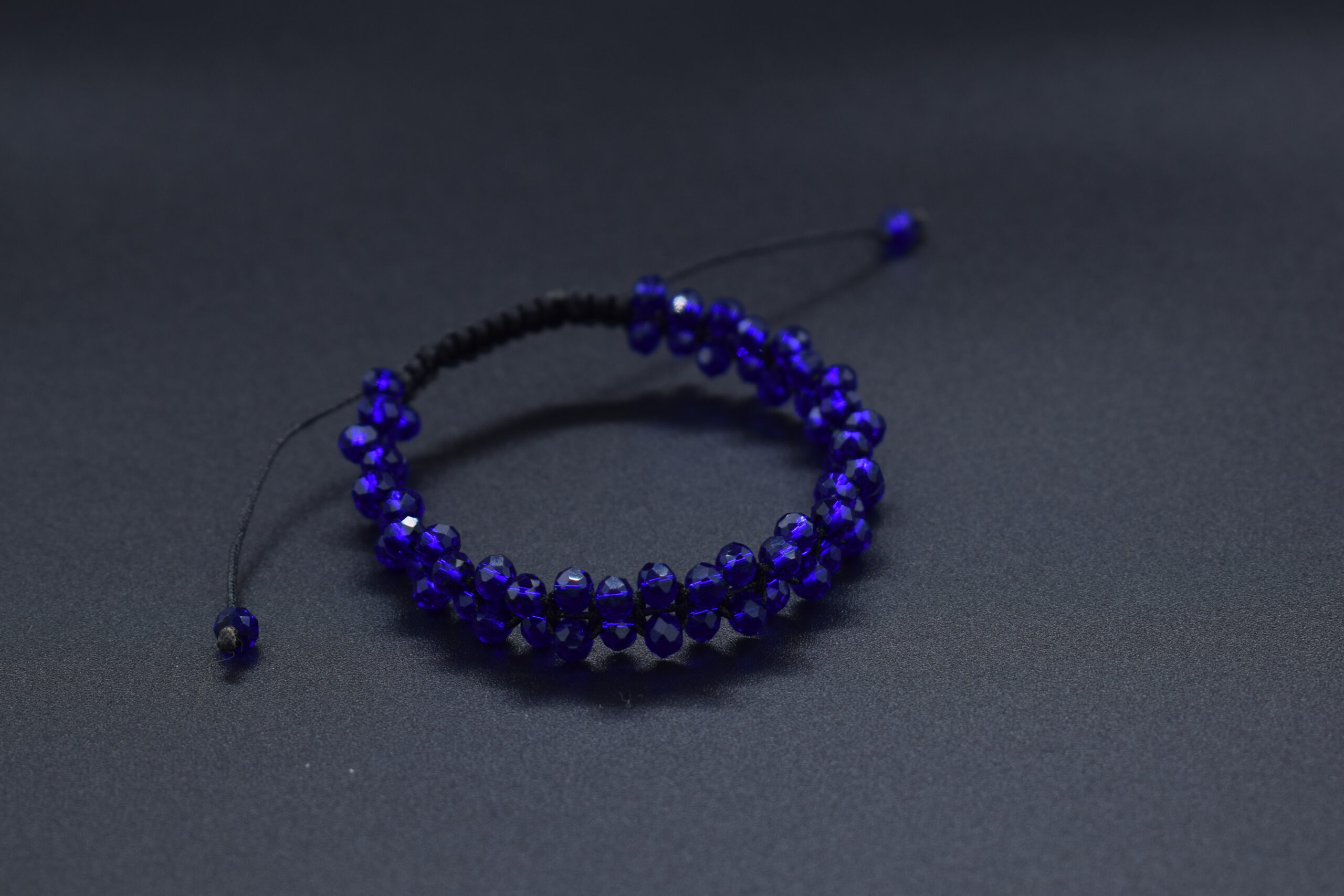 Bratara reglabila cu snur impletit si pietre semipretioase Cristal sticla albastru de 4mm