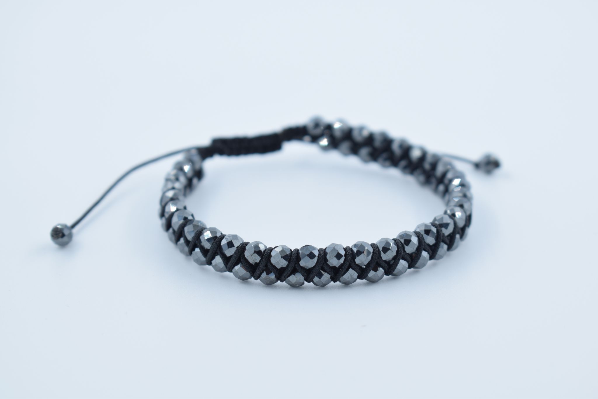Bratara reglabila cu snur impletit si pietre semipretioase Hematit gri fatetat de 4mm