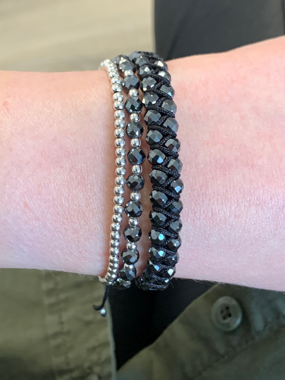 Snururile special create pentru bratari, rezistente la uzura si stresul cotidian, imbraca natural incheietura mainii si, impreuna cu piatra semipretioasa, Hematit, dau un plus de originalitate fiecarui model in parte.