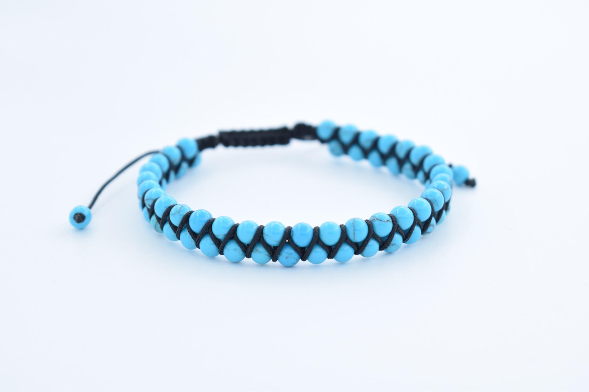 Bratara reglabila cu snur impletit si pietre semipretioase Turcoaz reconstituit de 4mm