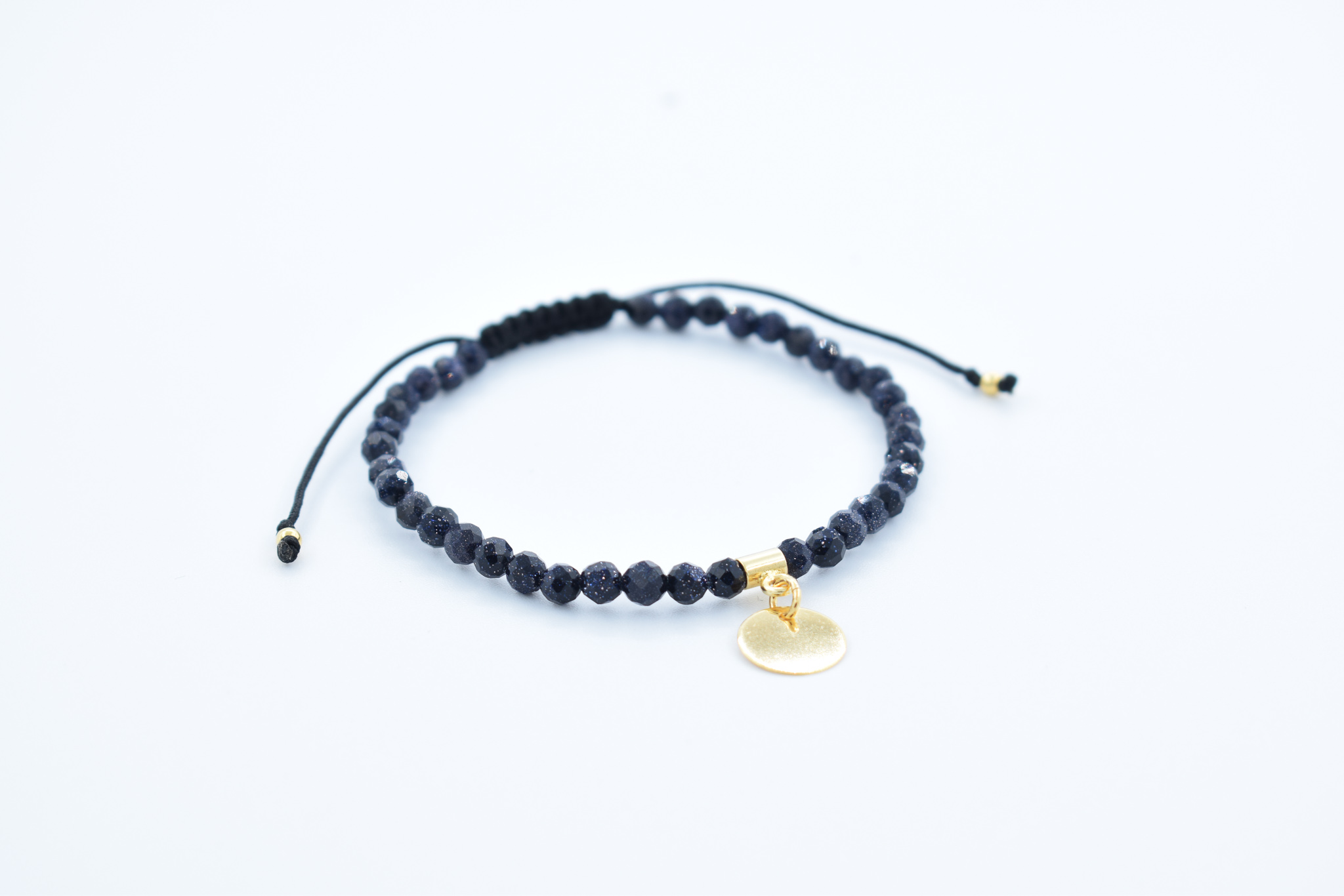 Bratara personalizata realizata manual cu pietre semipretioase Piatra Soarelui si charm banut din Argint 925 placat cu aur