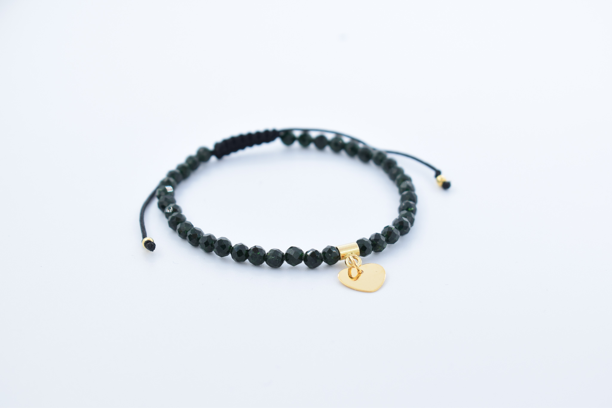 Bratara personalizata realizata manual cu pietre semipretioase Piatra Soarelui si charm Inima din Argint 925 placat cu aur
