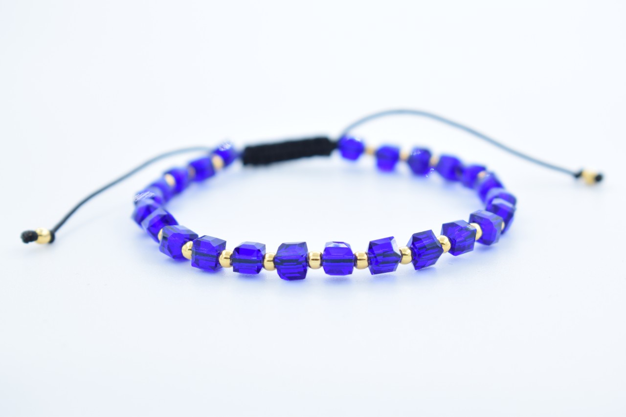 Bratara reglabila cu bile Argint 925 placat aur si pietre semipretioase Cristal Sticla cub albastru dimensiune 4mm