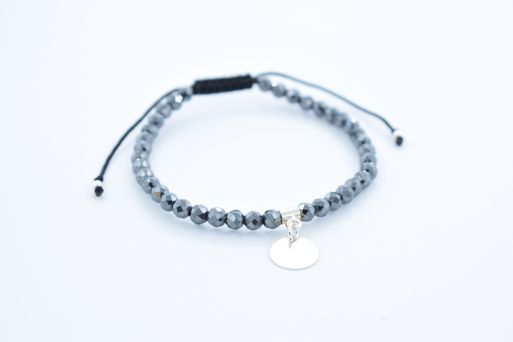 Bratara reglabila realizata manual cu Hematit gri si banut din Argint 925