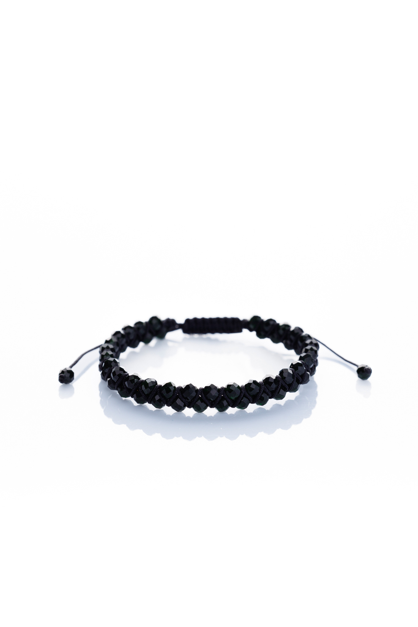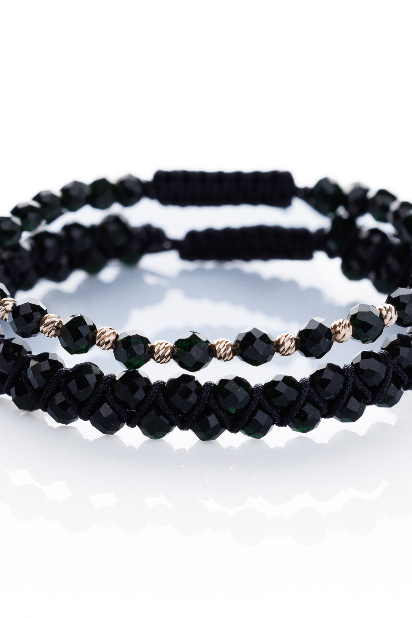 Brățară reglabilă realizată manual din șnur negru împletit și pietre semiprețioase din Piatra Soarelui verde fațetat. Această brățară este ușoară și confortabilă pentru a fi purtată zilnic. Brățările sunt bijuterii care pot adăuga o notă de eleganță și stil personal oricărei ținute.