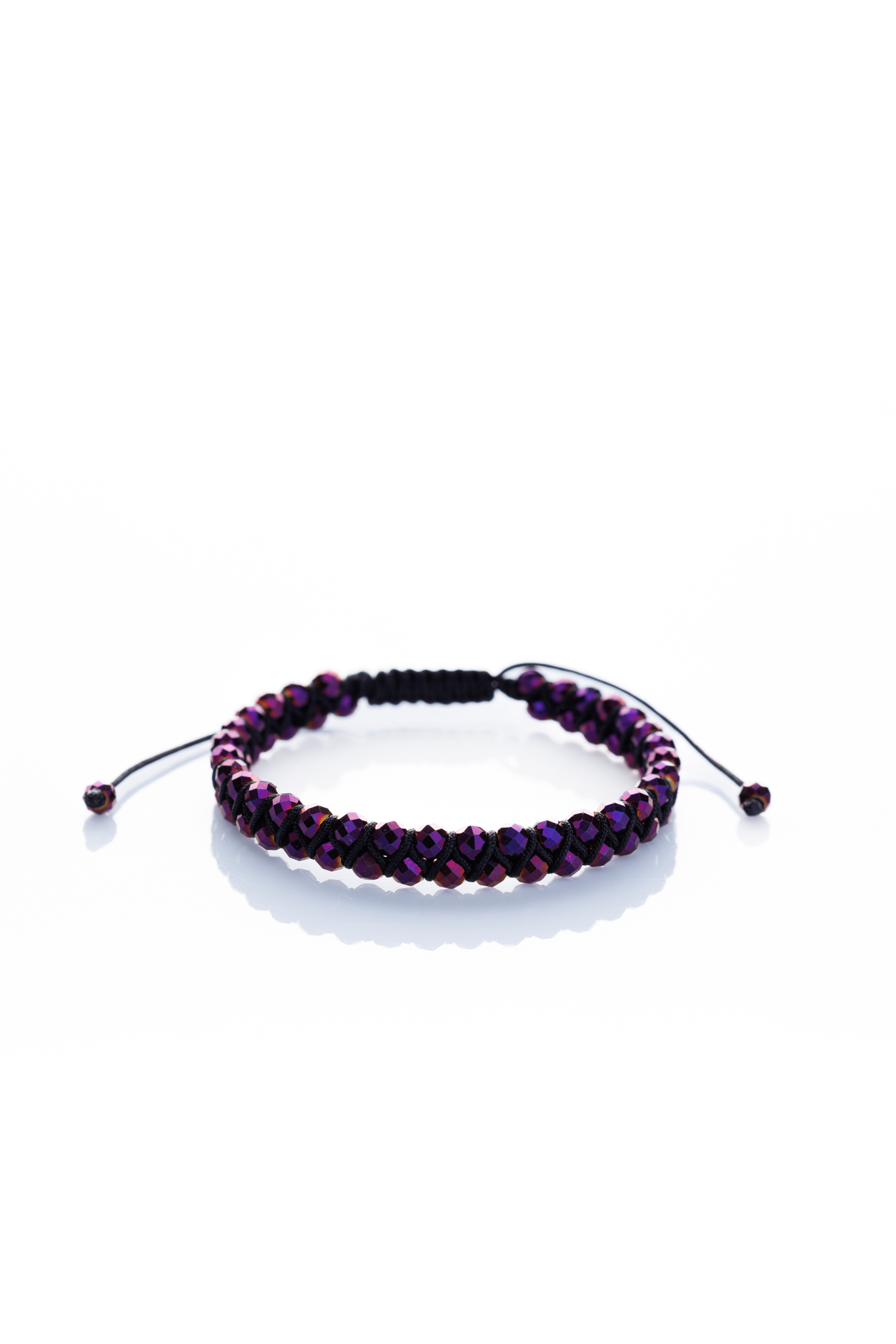 Brățara “Double PurpleHematite Slice” realizată prin impletitură manuală cu pietre semiprețioase din Hematit mov de 4mm. Pietrele de Hematit sunt atent selecționate și aranjate pentru a crea un design armonios și echilibrat.