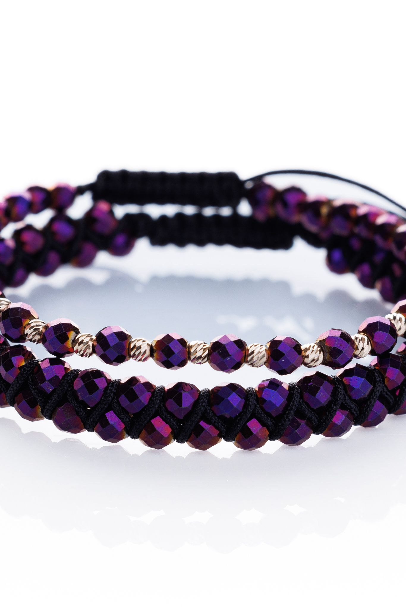 Brățară “Double PuprpleHematite Slice” împletita manual cu pietre din Hematit mov fațetat de 4mm