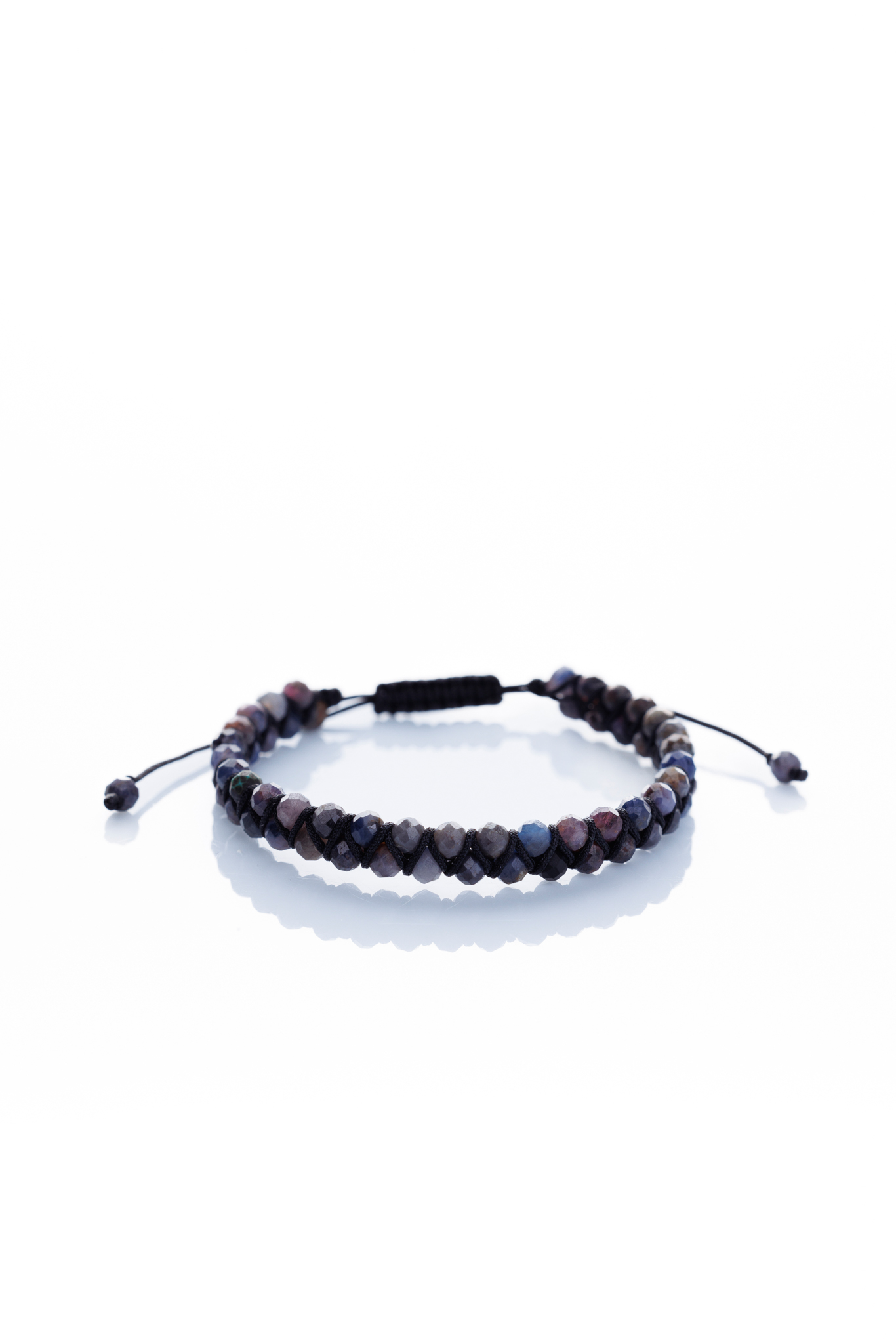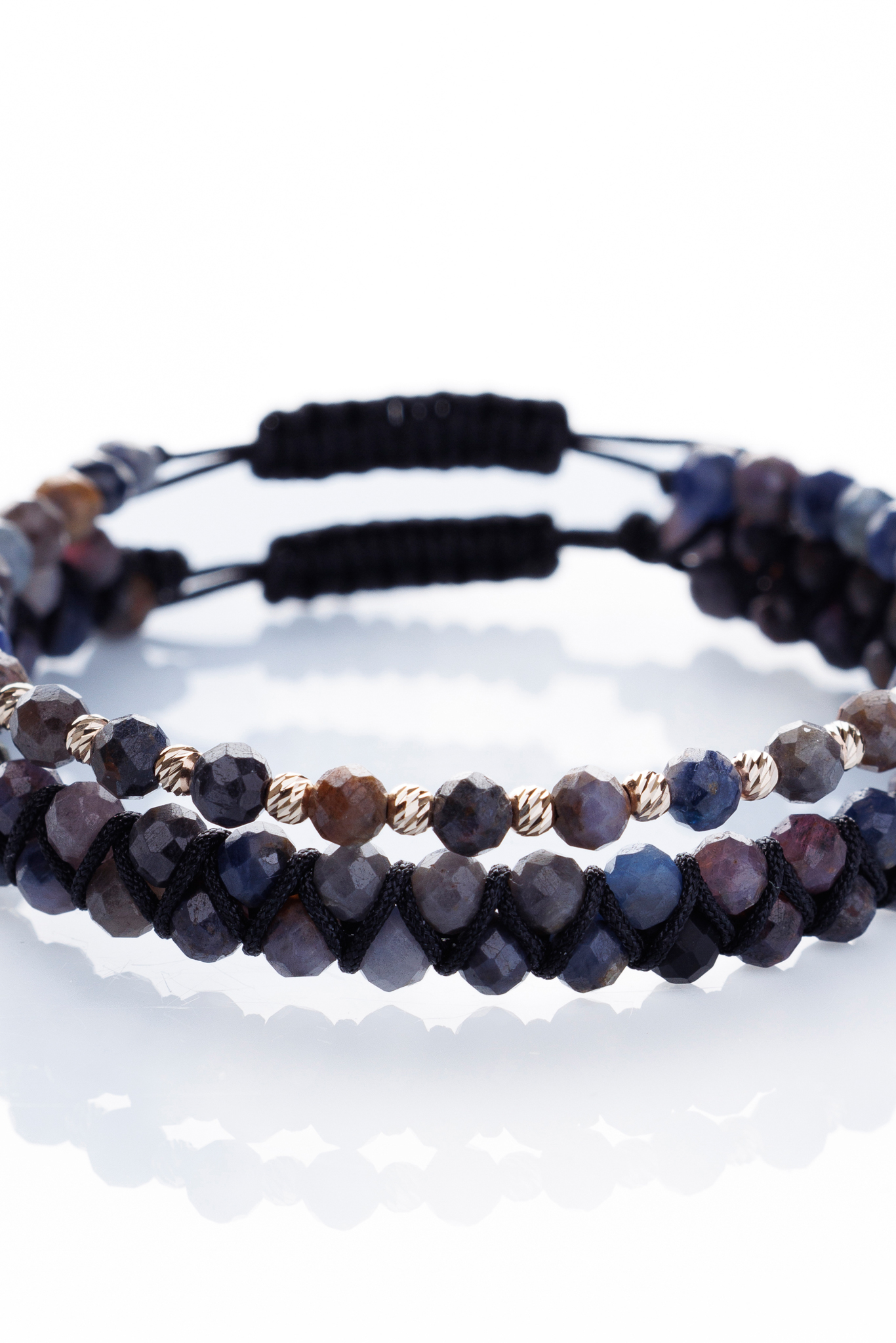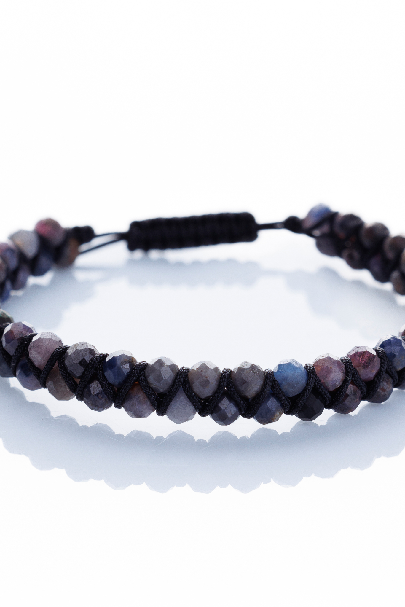 Brățară reglabilă realizată manual din șnur negru împletit și pietre semiprețioase din Safir fațetat. Această brățară este ușoară și confortabilă pentru a fi purtată zilnic. Brățările sunt bijuterii care pot adăuga o notă de eleganță și stil personal oricărei ținute.