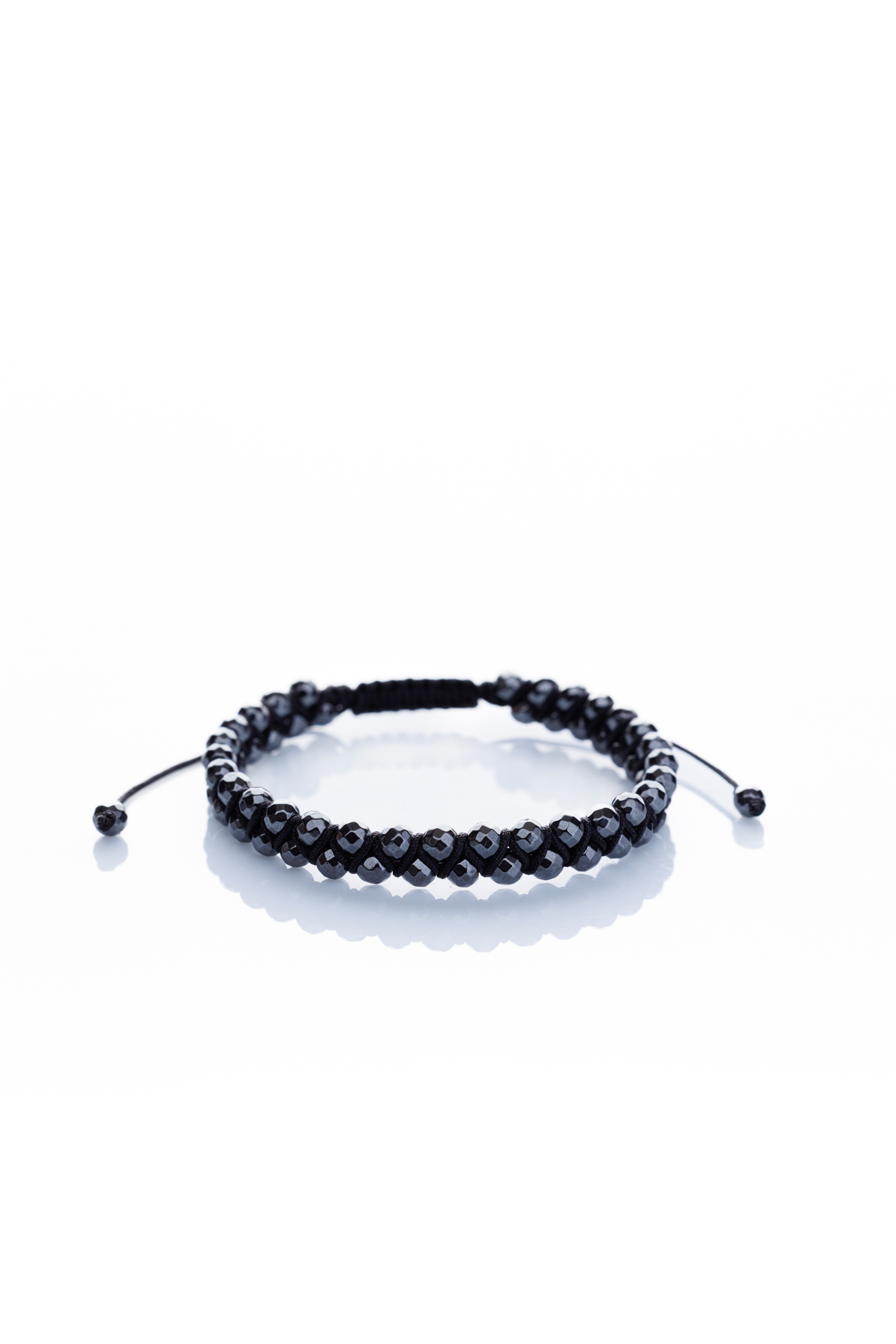 Brățară reglabilă realizată manual din șnur negru împletit și pietre semiprețioase din Hematit argintiu fațetat. Această brățară este ușoară și confortabilă pentru a fi purtată zilnic. Brățările sunt bijuterii care pot adăuga o notă de eleganță și stil personal oricărei ținute.