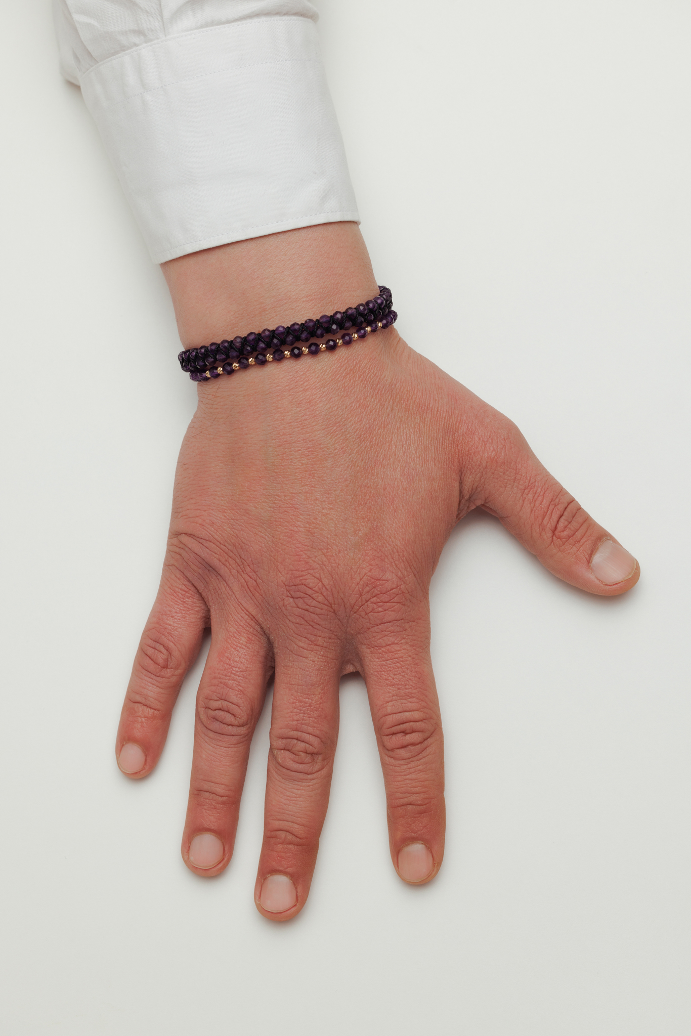 Brățară reglabilă realizată manual din aur de 14k și decorată cu pietre semiprețioase de Ametist. Cu o greutate de doar 0.40 grame, această brățară este ușoară și confortabilă pentru a fi purtată zilnic.