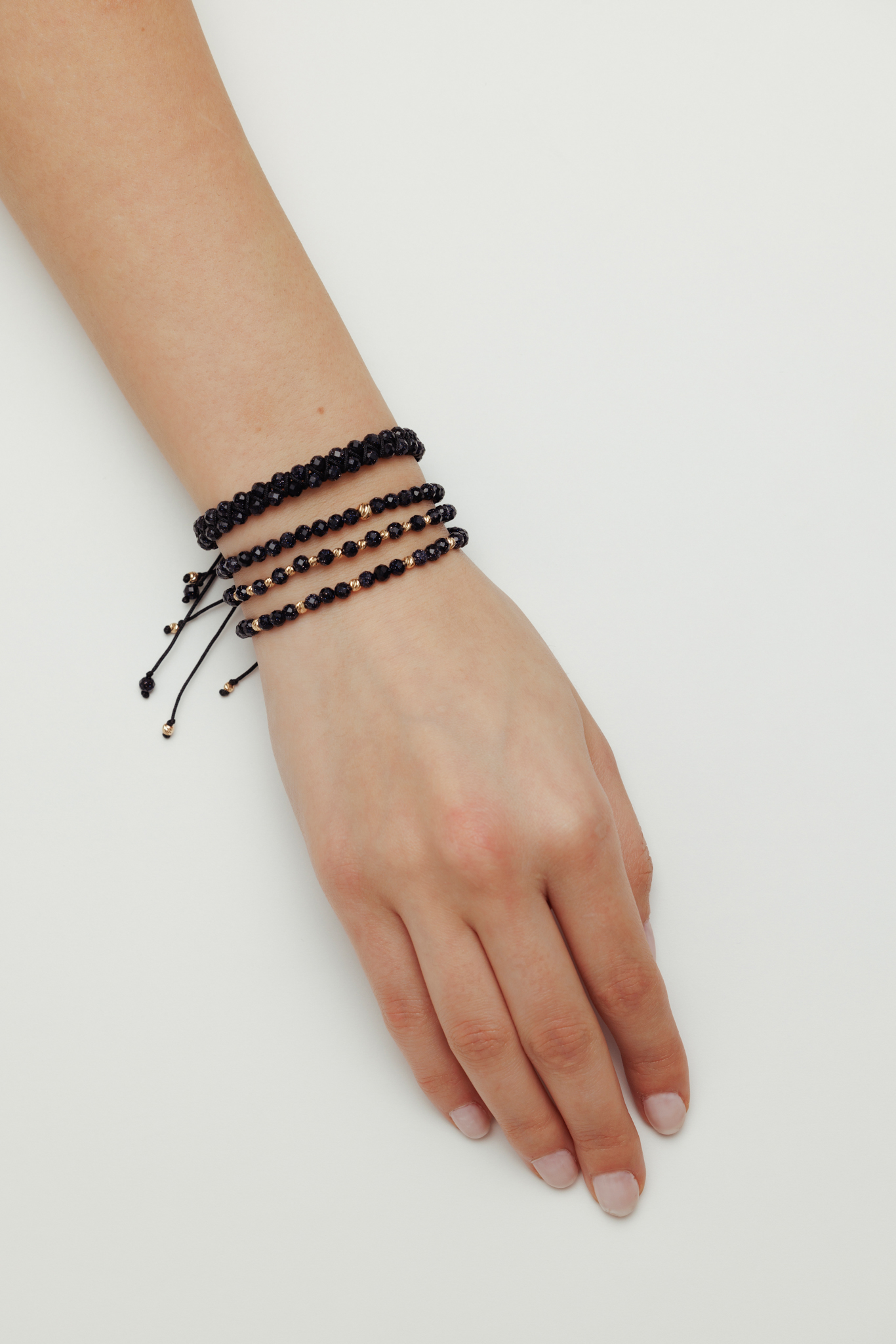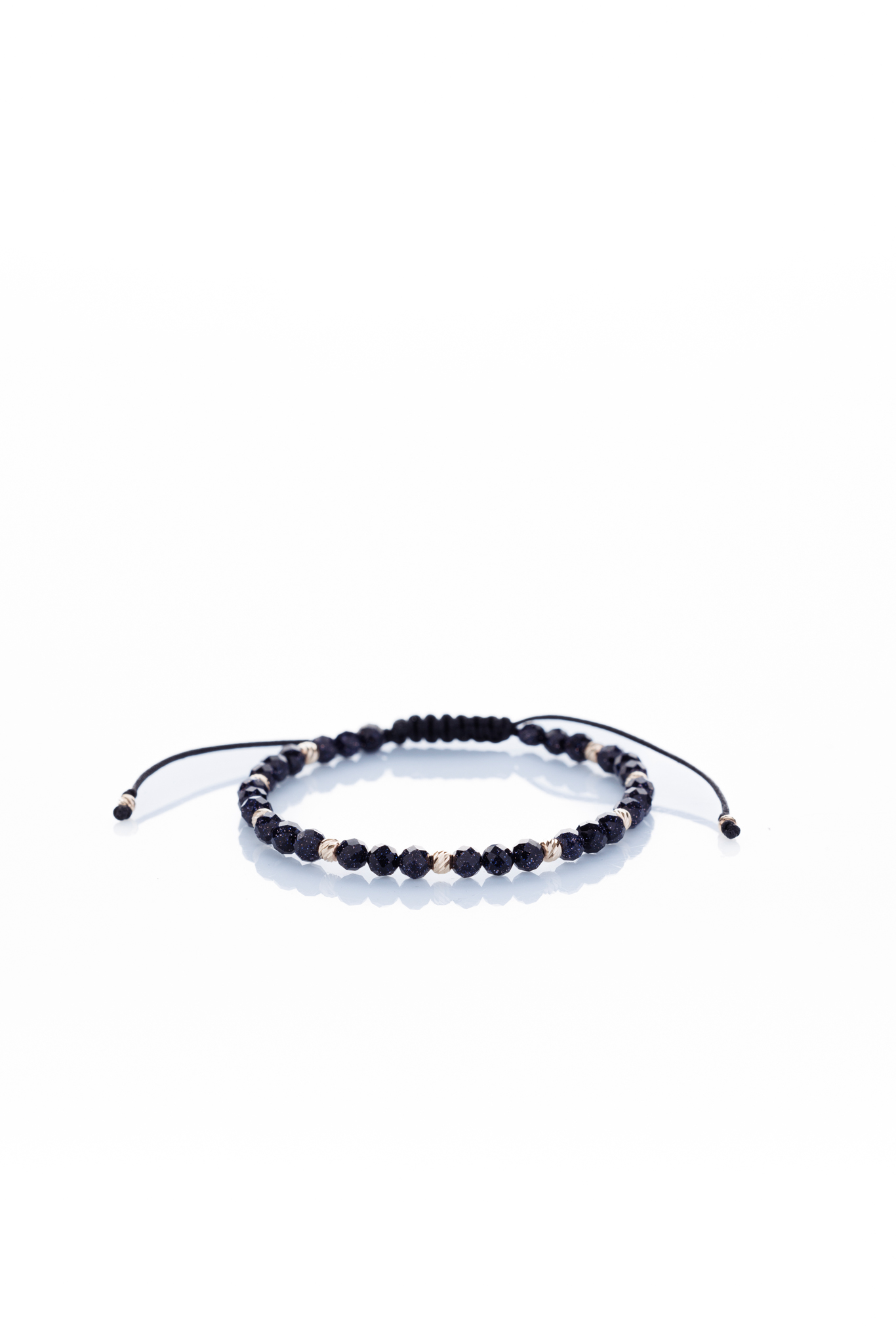 Brățară reglabilă realizată manual din aur de 14k și decorată cu pietre semiprețioase de piatra Soarelui albastru fațetat. Cu o greutate de doar 0.49 grame, această brățară este ușoară și confortabilă pentru a fi purtată zilnic.