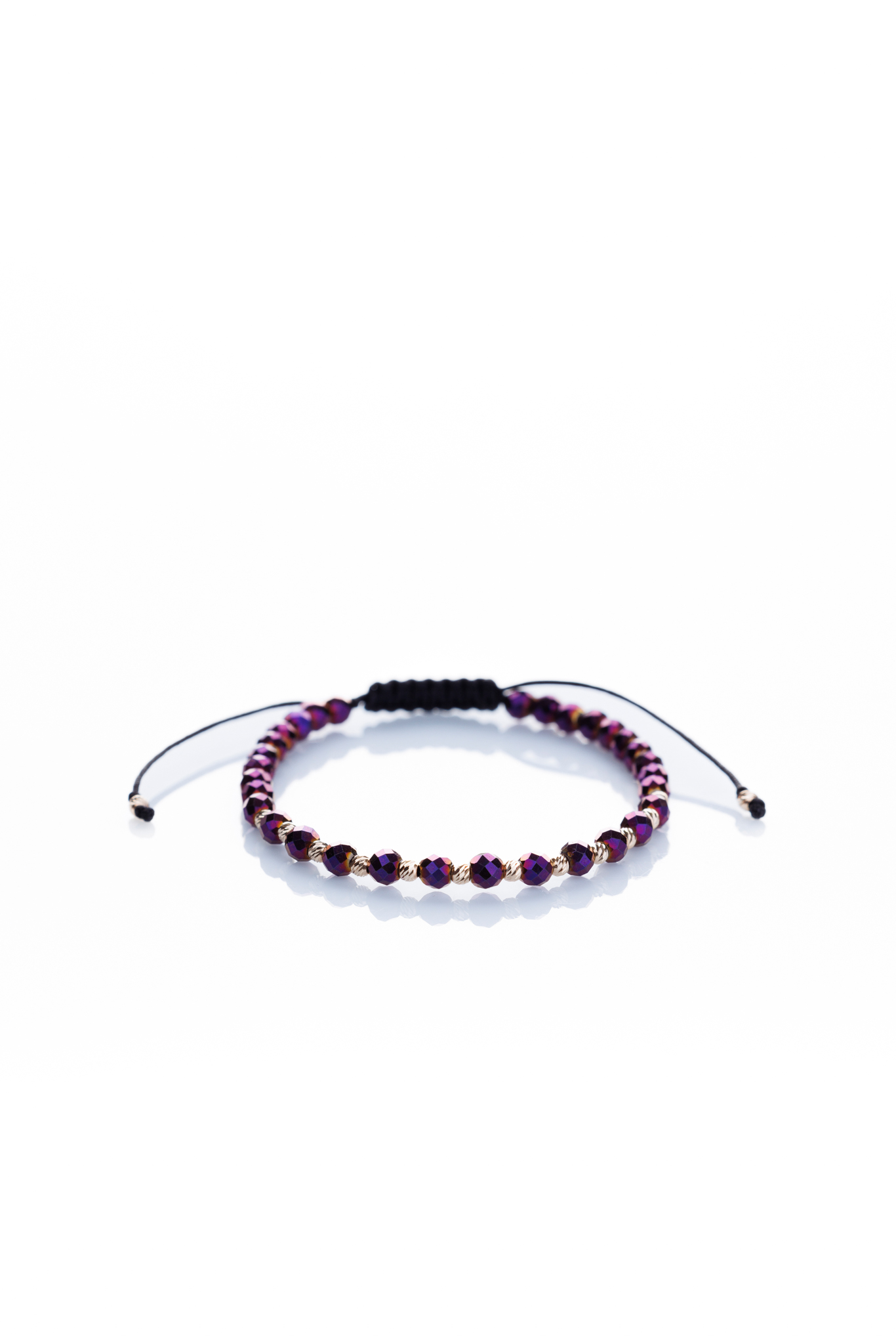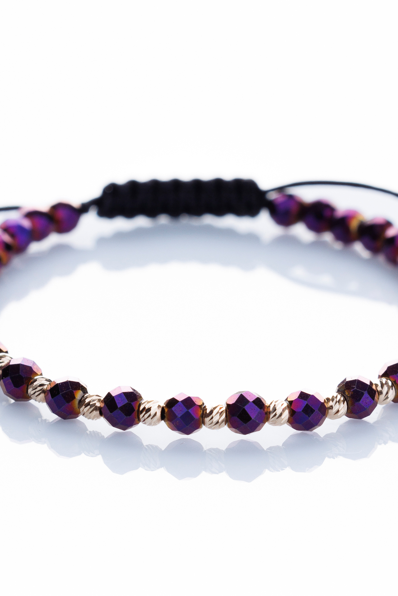 Brățară reglabilă realizată manual din aur de 14k și decorată cu pietre semiprețioase de Hematit mov fațetat. Cu o greutate de doar 0.40 grame, această brățară este ușoară și confortabilă pentru a fi purtată zilnic.