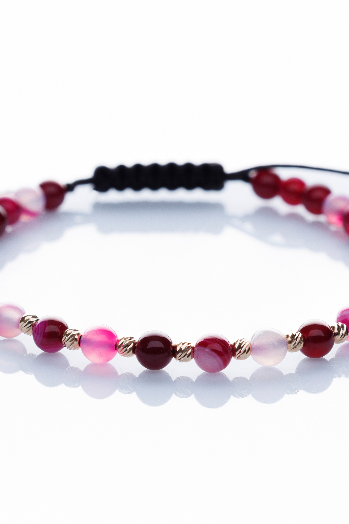 Folosind aur de 14k de înaltă calitate(import Italia), am creat această bijuterie elegantă și strălucitoare, care este perfectă pentru a fi purtată în orice ocazie. Bilele din aur de 14k sunt frumos lucrate, reflectând lumina într-un mod unic și atrăgător. Acestea se armonizează frumos cu celelalte componente ale brățării, cum ar fi pietrele semipretiose din Agat.