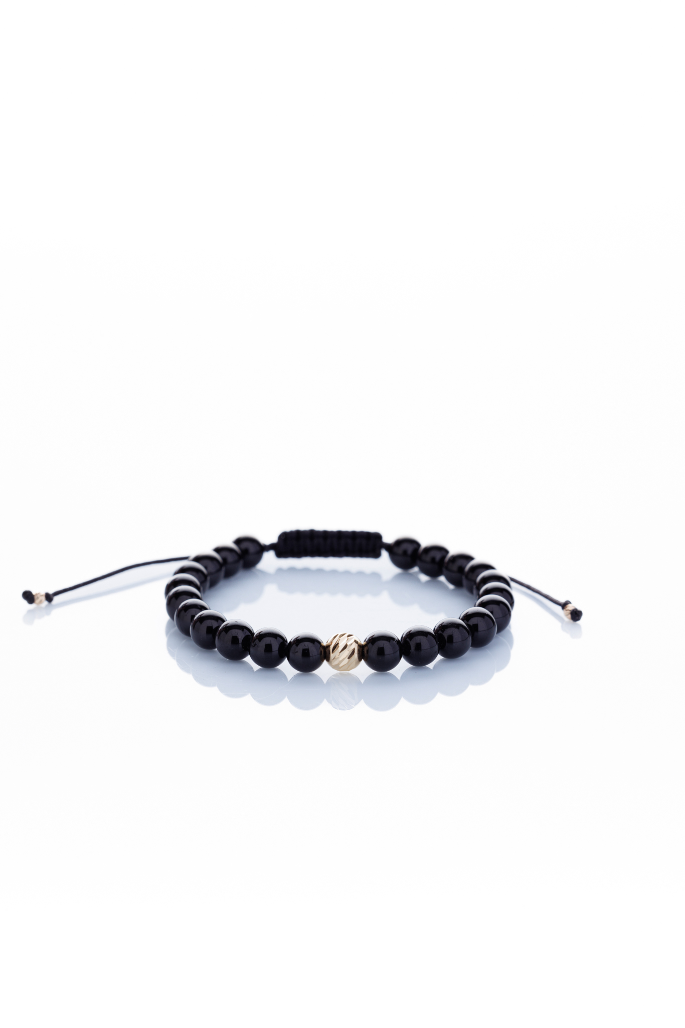 Brățară reglabilă realizată manual din aur de 14k și decorată cu pietre semiprețioase de Turmalina negru lucios. Cu o greutate de doar 0.39 grame, această brățară este ușoară și confortabilă pentru a fi purtată zilnic.
