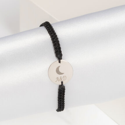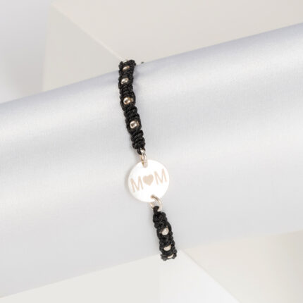 Bratara cu snur impletit si Banut Argint placat aur de 12mm gravat cu laser