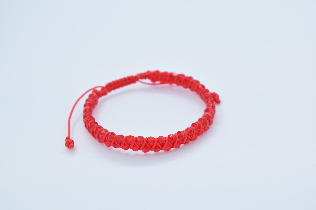 Bratara reglabila cu snur impletit si pietre semipretioase Cristal sticla rosu de 4mm