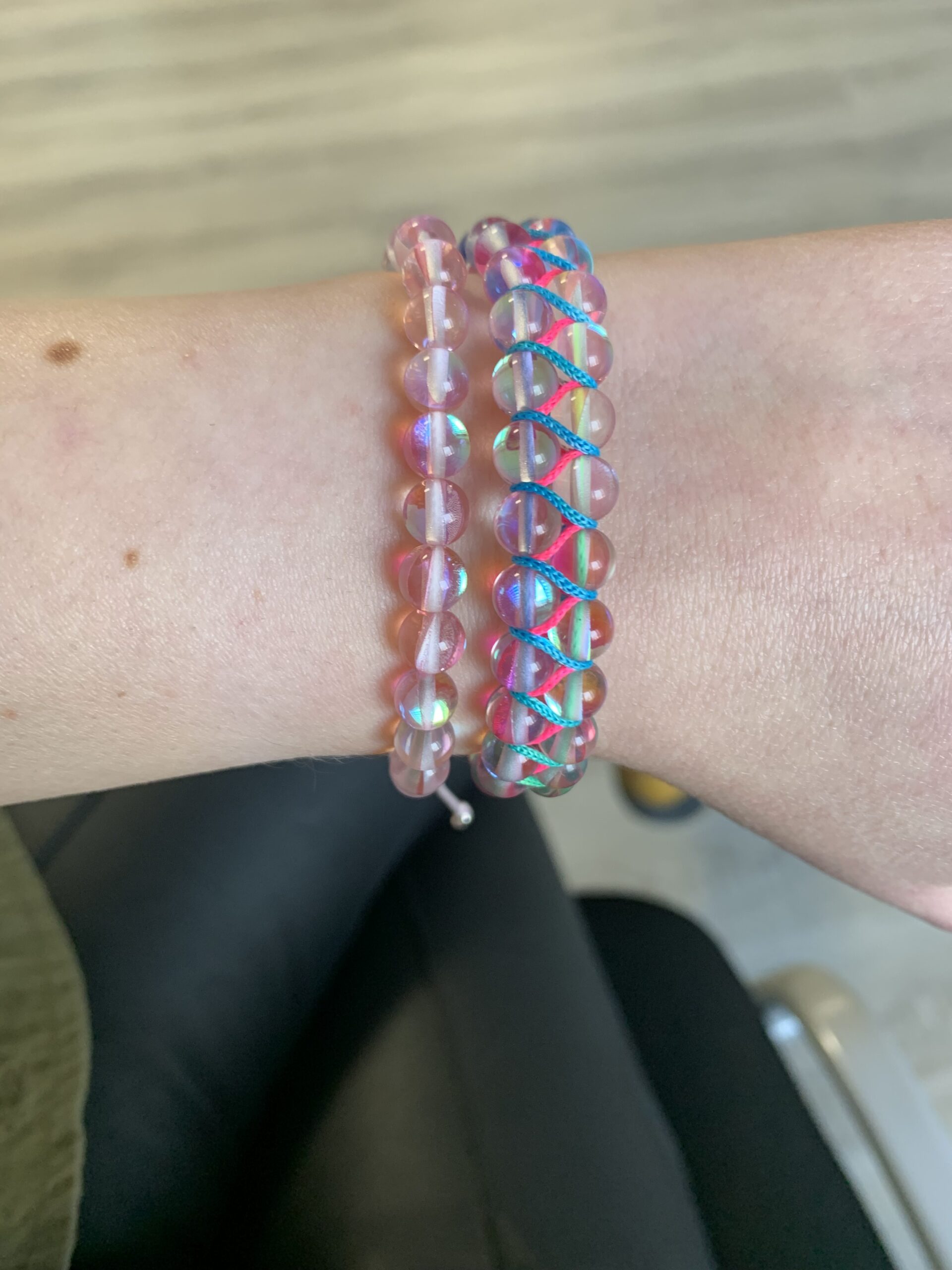 Bratara reglabila cu snur impletit si pietre semipretioase Mermaid glass roz de 6mm