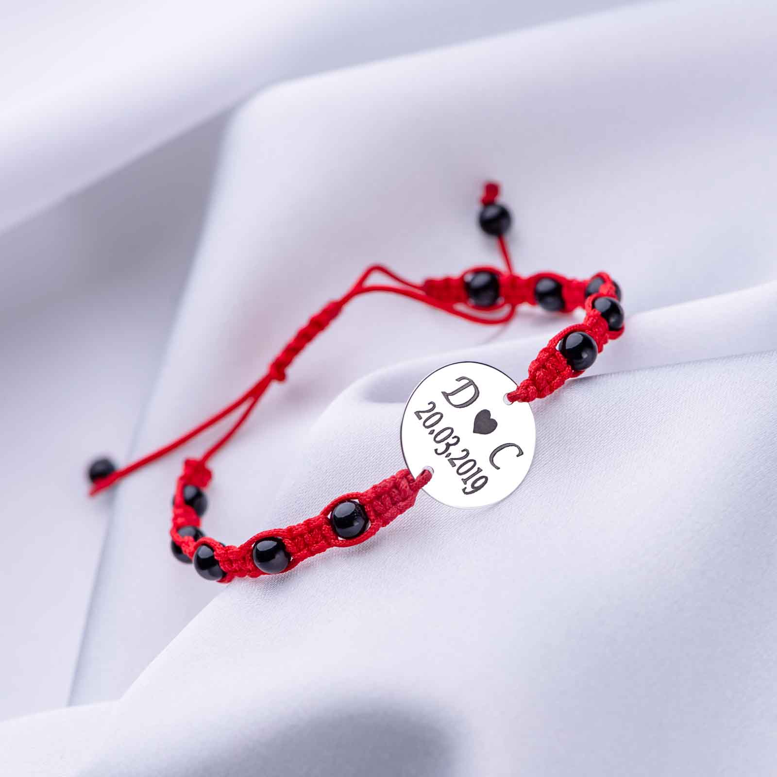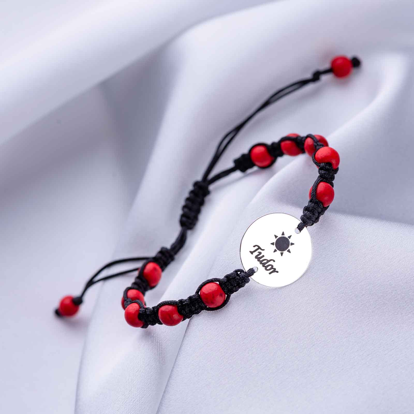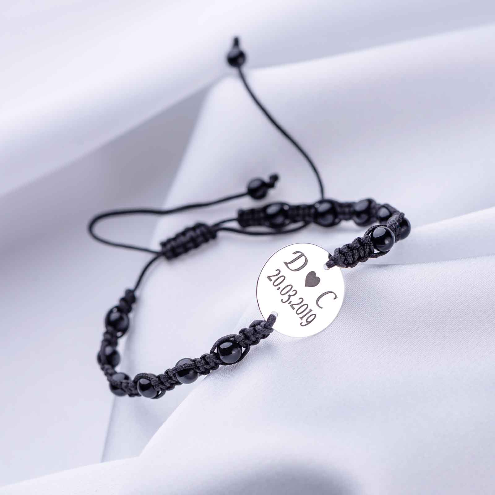 Bratara Reglabila Manik Impletita Manual cu Banut din Argint 925 16mm gravata laser
