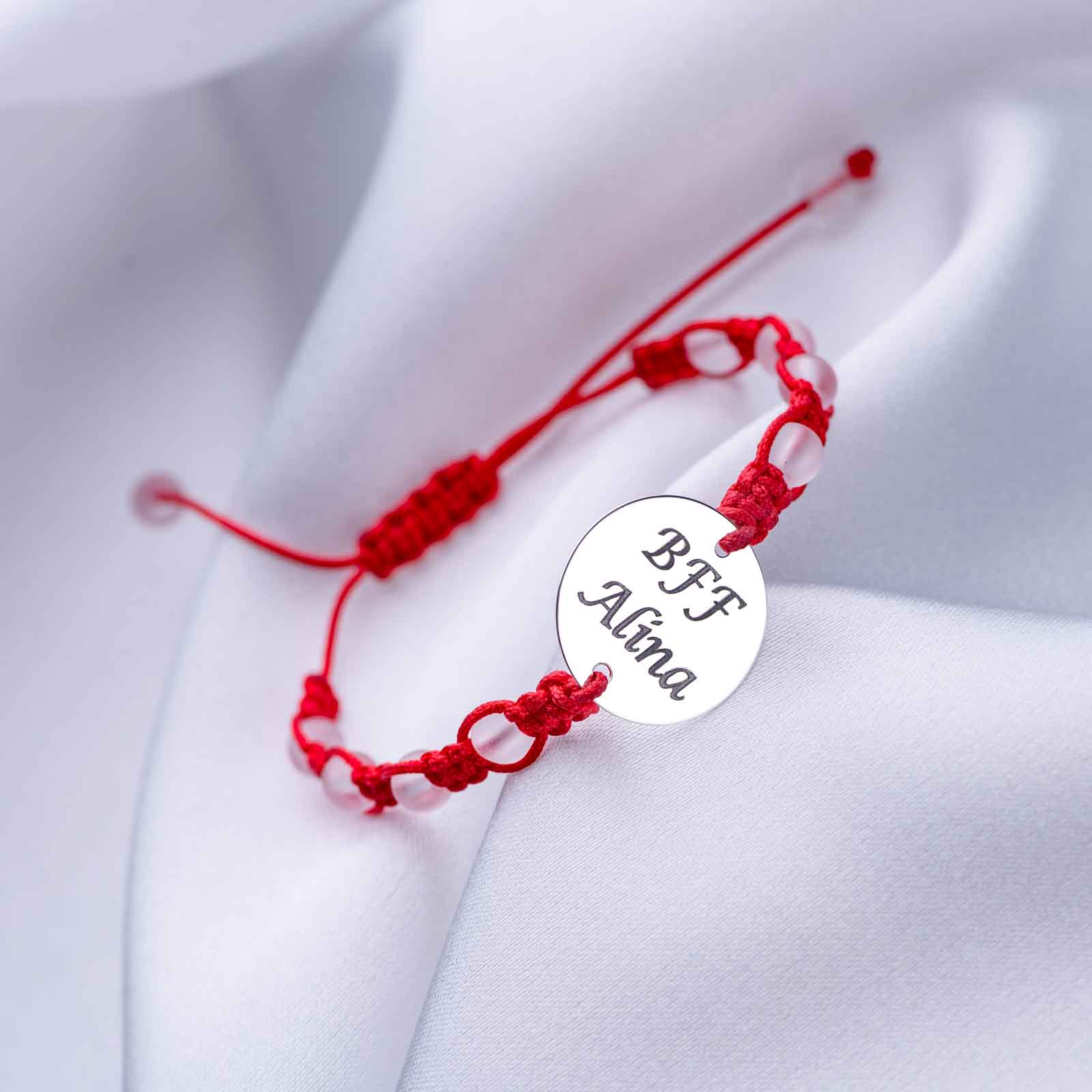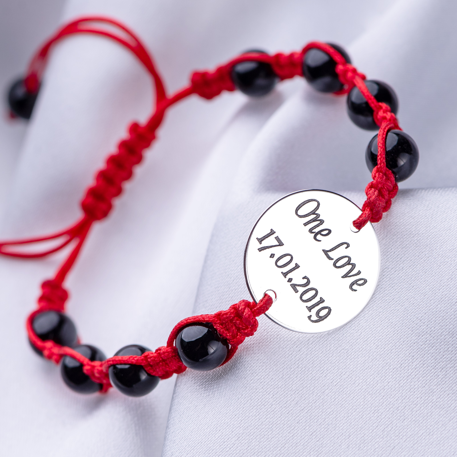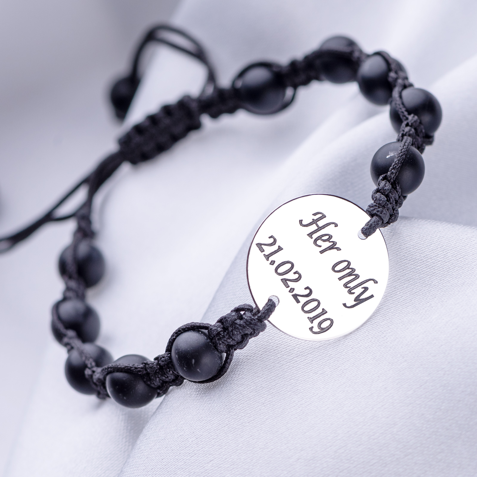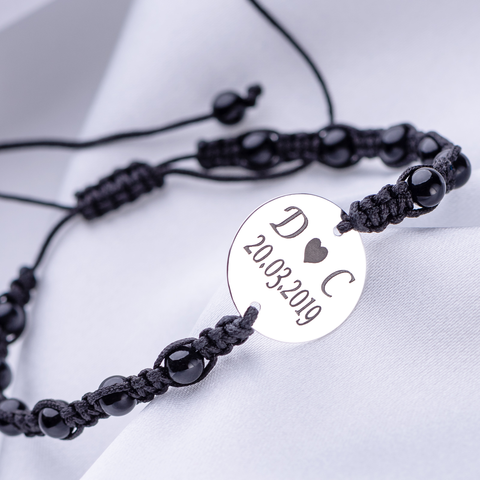 Bratara Reglabila Manik Impletita Manual cu Banut din Argint 925 16mm gravata laser