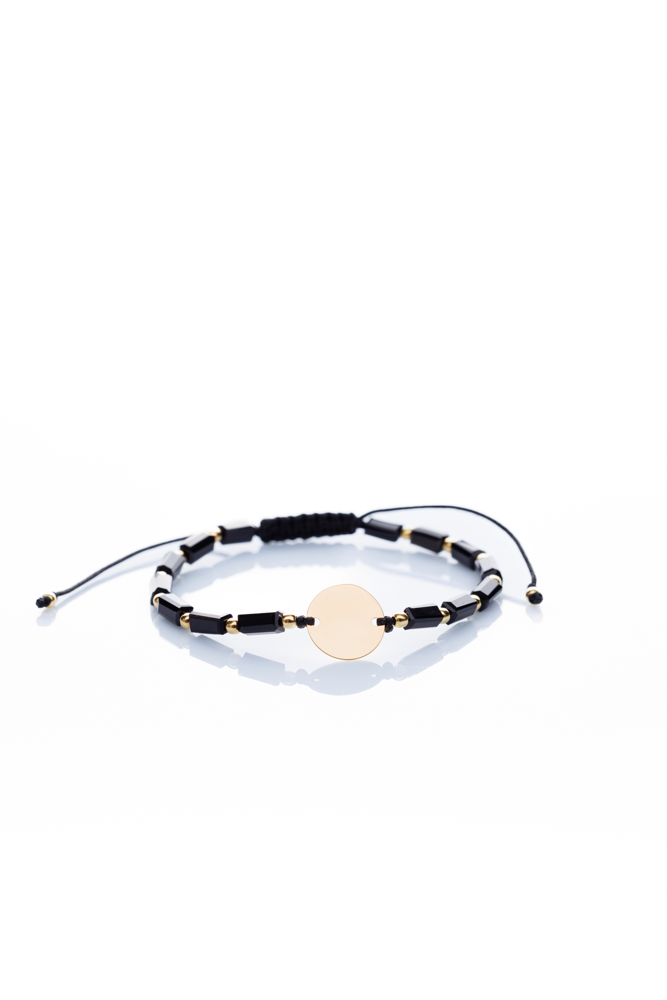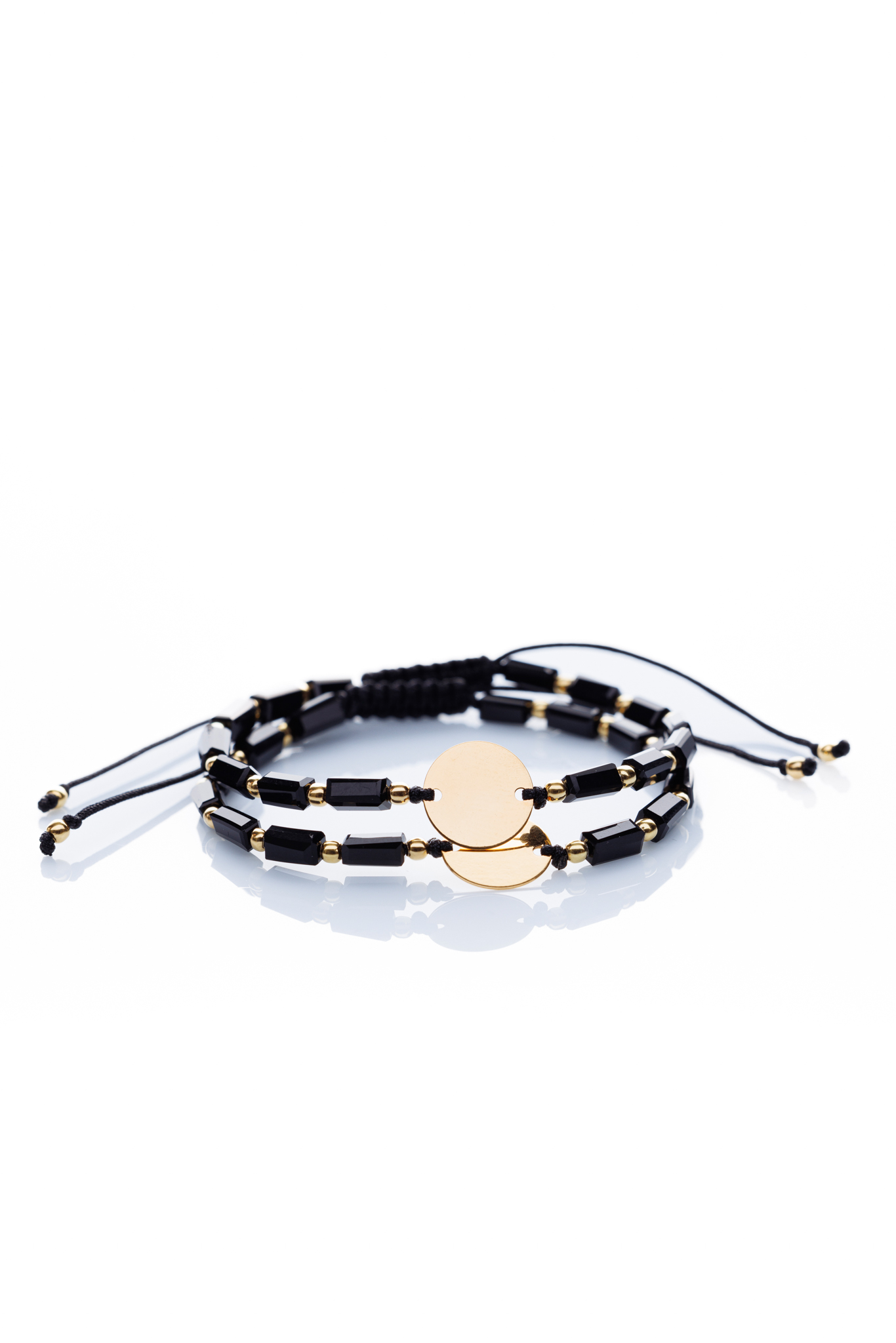 Set 2 bratari „Duo Black” handmade personalizate snur reglabil cristal sticla cu banut din Argint 925 placat cu aur