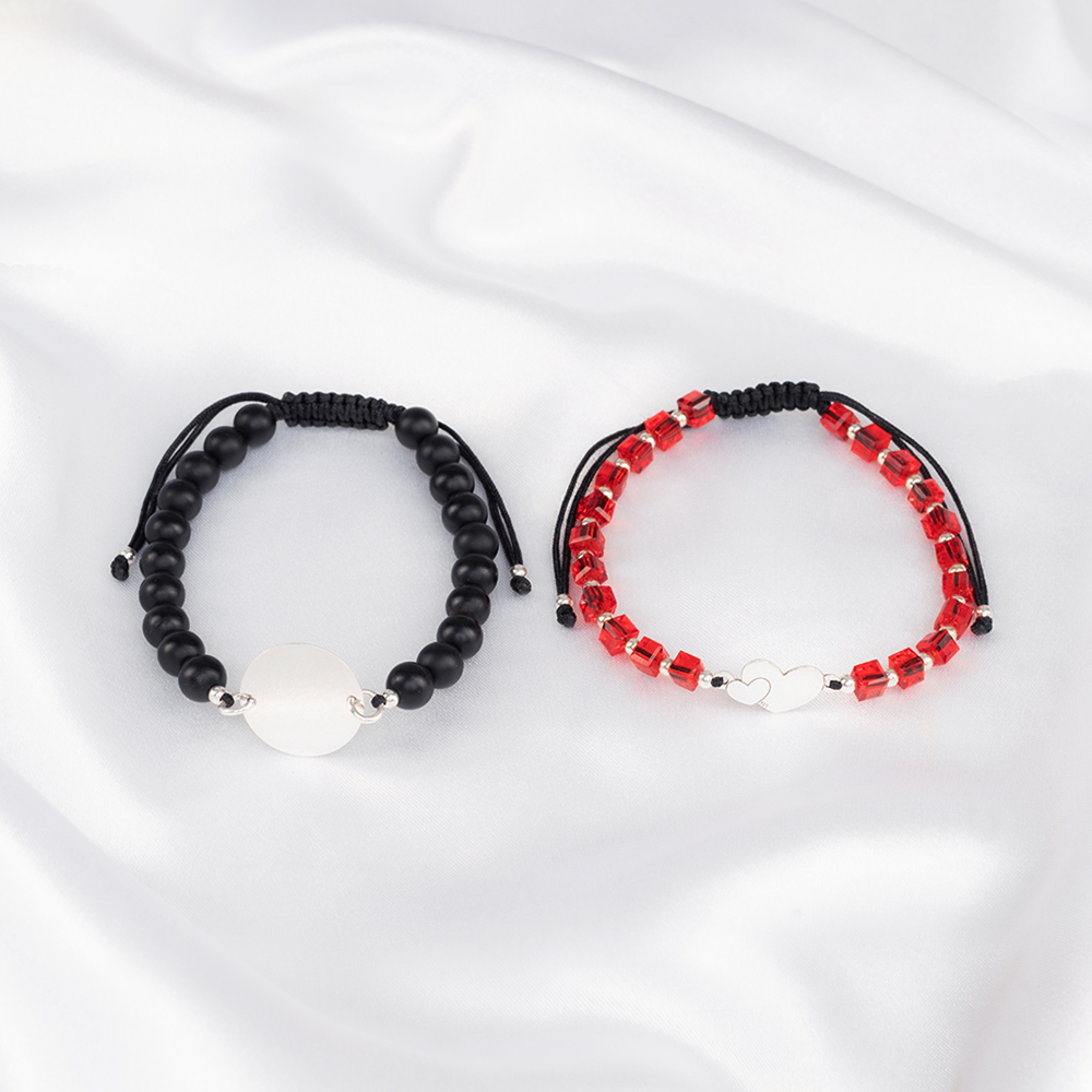 Set bratari personalizate pentru cupluri cu Banut Argint 925 si Pandantiv Argint cu 2 Inimi