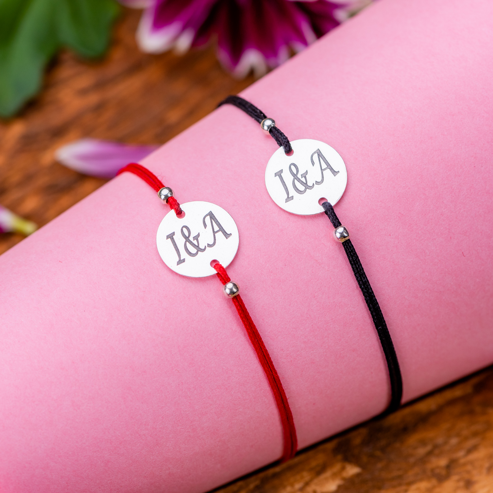 Set Bratari Personalizate pentru Cupluri cu Banut din Argint 12 mm gravate laser