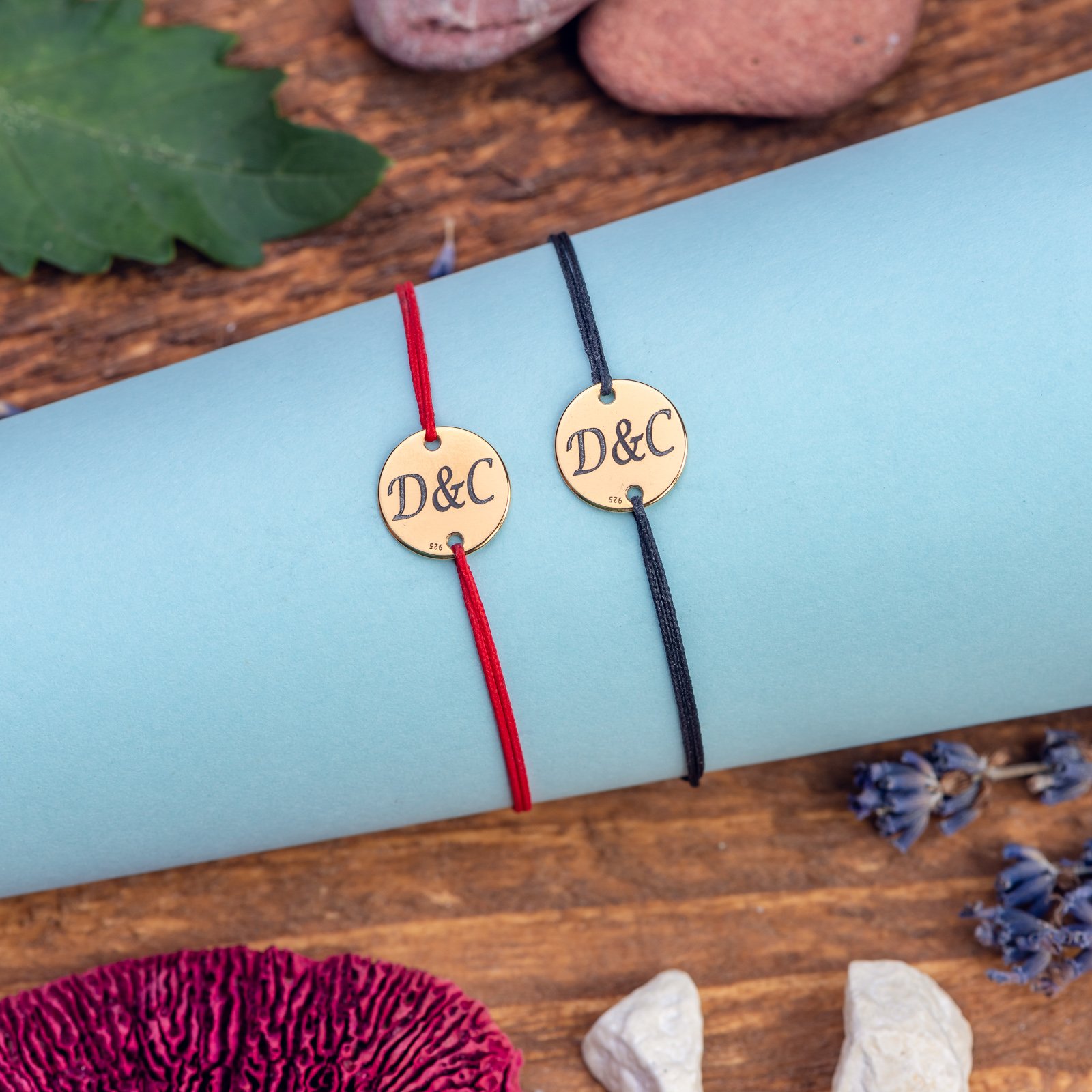 Elementul central al fiecărei brățări este banutul din argint 925 cu diametrul de 12 mm. Acest bănuț este placat cu aur, oferindu-i un aspect strălucitor și rafinat. Bănuțul poate fi personalizat cu ajutorul gravurii laser, permițându-ți să adaugi inițialele, numele sau un mesaj special care are o semnificație specială pentru tine sau pentru persoana căreia îi oferi acest set de brățări.