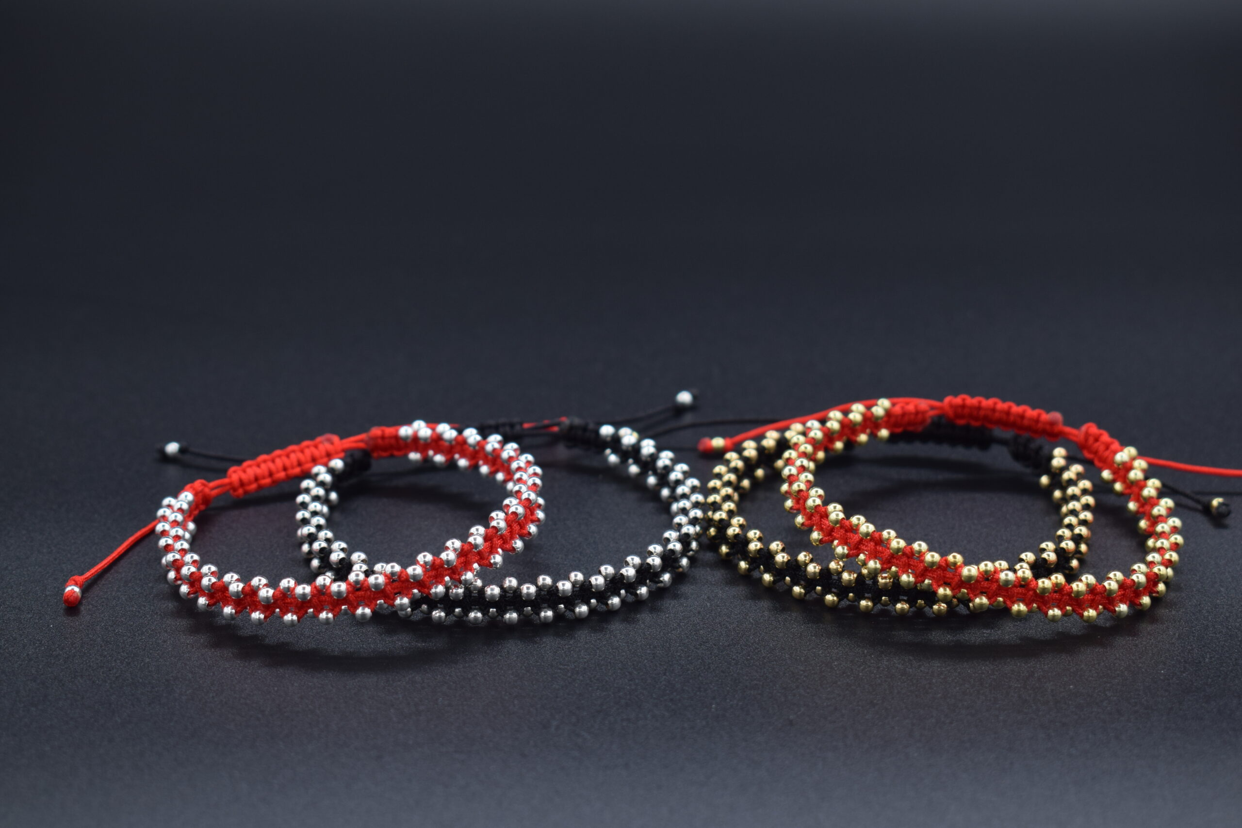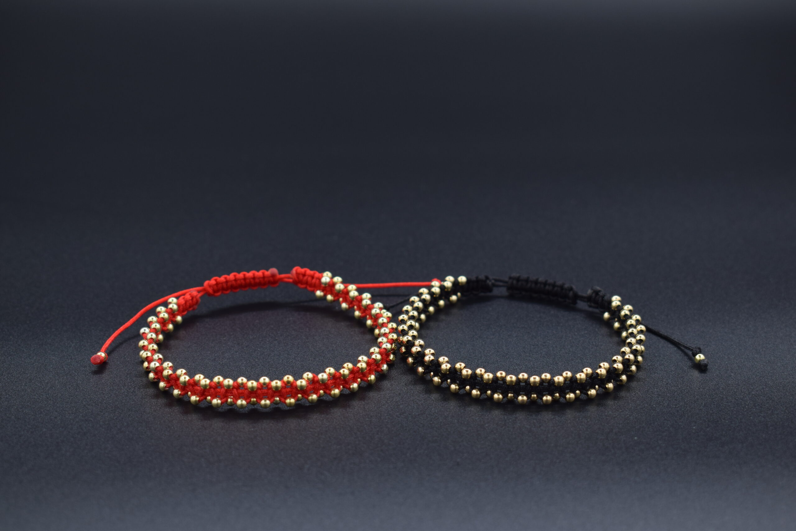 Set bratari reglabile impletite manual cu bile din Argint 925, placat cu aur