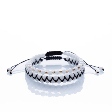 Set de 2 brățarări reglabile realizate manual din șnur împletit, pietre semiprețioase din Onix și aur de 14k. Cu o greutate de doar 0.40 grame aur, aceaste brățari sunt ușoare și confortabile pentru a fi purtate zilnic. Brățările sunt bijuterii care pot adăuga o notă de eleganță și stil personal oricărei ținute. O brățară bine aleasă poate completa aspectul general al unei persoane și poate ajuta la evidențierea personalității sale. În plus, brățările pot fi purtate în moduri diferite, oferind o varietate de opțiuni pentru a se potrivi diferitelor ocazii și stiluri.